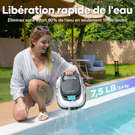 Récupérer votre appareil n'a jamais été aussi facile, un système de purge d'eau sophistiqué nouvellement amélioré draine jusqu'à 80% de l'eau stockée en seulement 15 secondes, rendant le robot de piscine Scuba 800 ultra-portable.