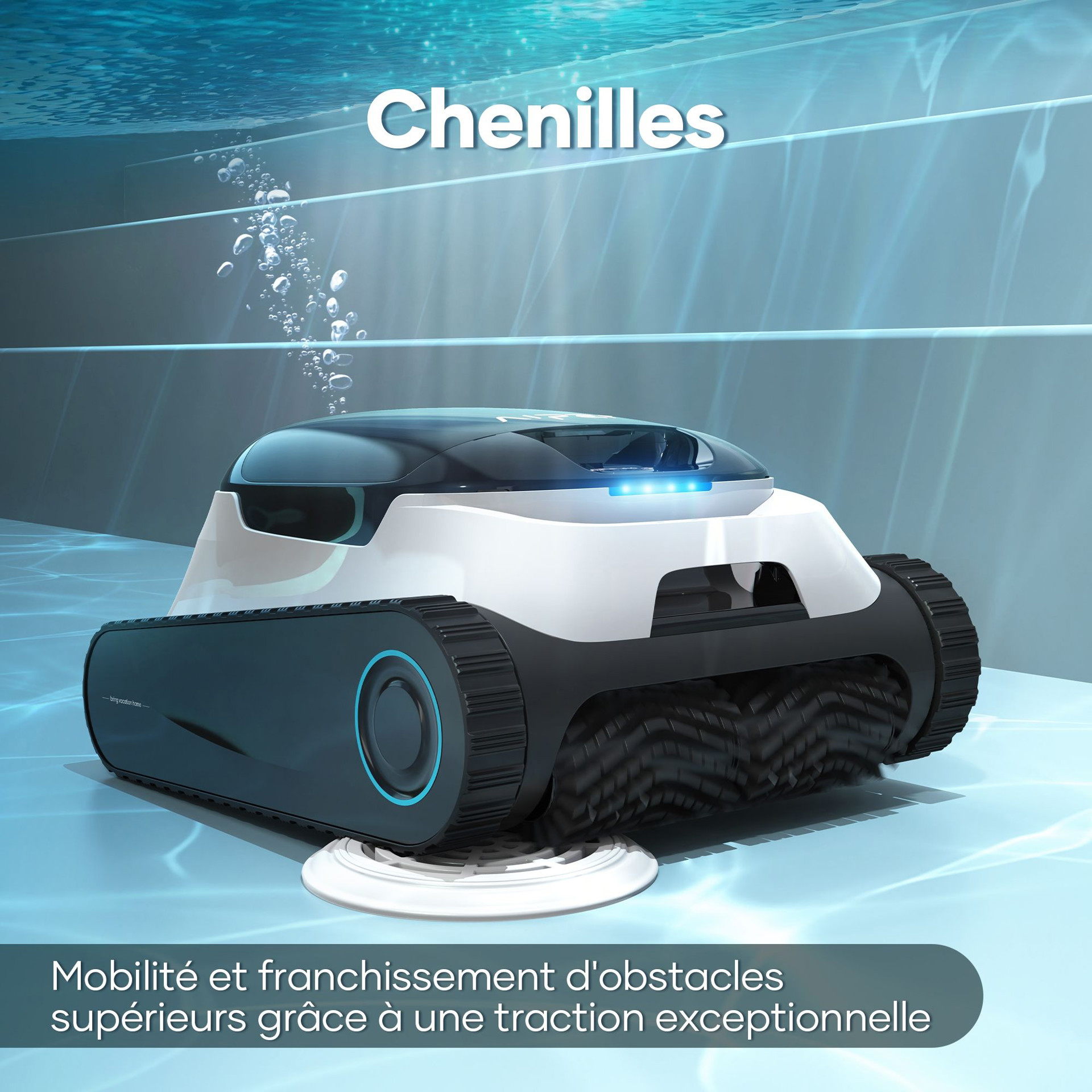 Pour un nettoyage de bord à bord, quel que soit le terrain que votre piscine lui présente, le Aspirateur de Piscine Scuba N1 d'Aiper est prêt à relever le défi. Les chenilles du Scuba N1 offrent un contact plus étroit avec votre piscine, ce qui signifie une meilleure adhérence, une mobilité supérieure et une traversée d'obstacles supérieure le long du sol et des parois de votre piscine.