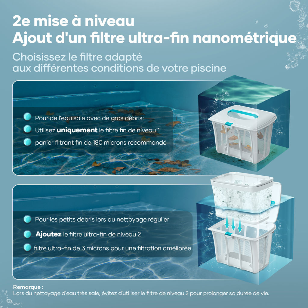 Ce filtre ultra-fin MicroMesh™ garantit que toutes les impuretés, y compris les minuscules particules de sable et de poussière, sont efficacement capturées dans la chambre à poussière, évitant ainsi les obstructions et maintenant une efficacité de nettoyage durable.
