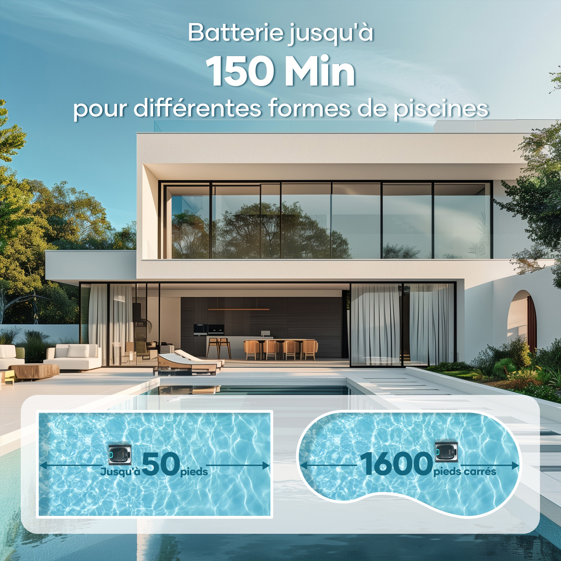 Votre Robot de Piscine Aiper nettoiera pendant 45 minutes toutes les 48 heures avant de passer en mode basse consommation. Ce cycle se répète trois fois, garantissant que votre piscine reste propre toute la semaine. Quand le week-end arrive, votre piscine est prête à nager, pas à nettoyer.