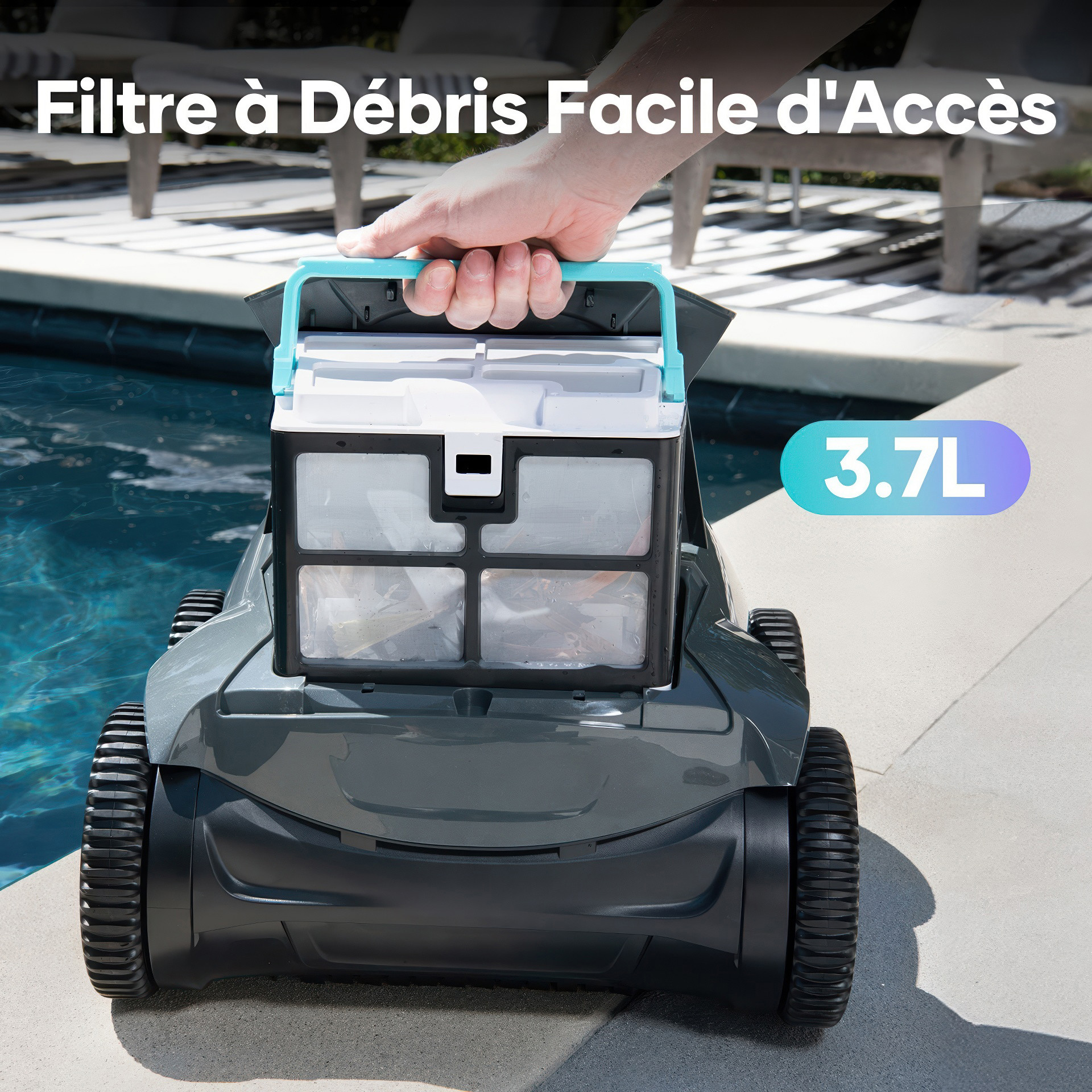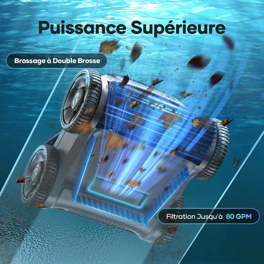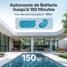 Jusqu'à 150 minutes de nettoyages pour les piscines jusqu'à 1614 pi2.