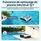 L’application Aiper permet de télécommander le robot et de surveiller l’autonomie de la batterie ainsi que les modes de nettoyage, pour une commodité et un contrôle accrus.