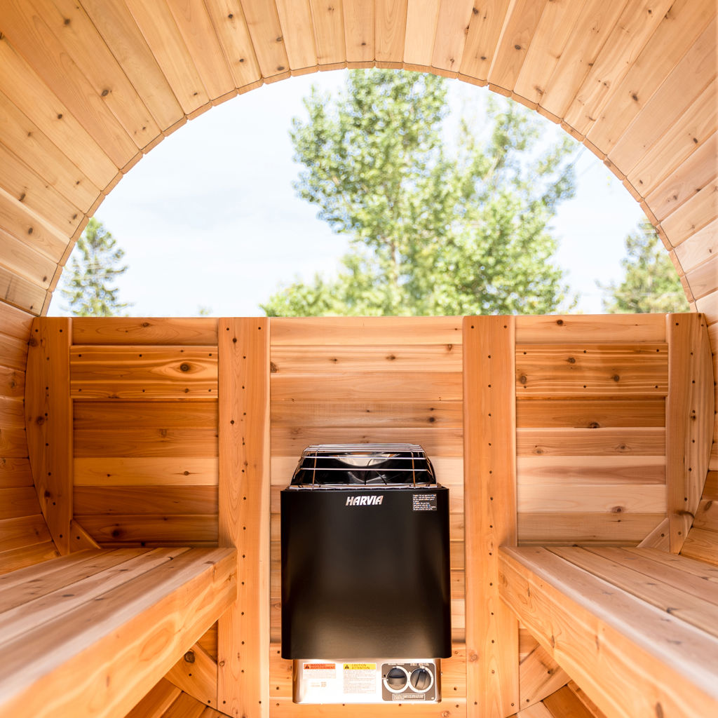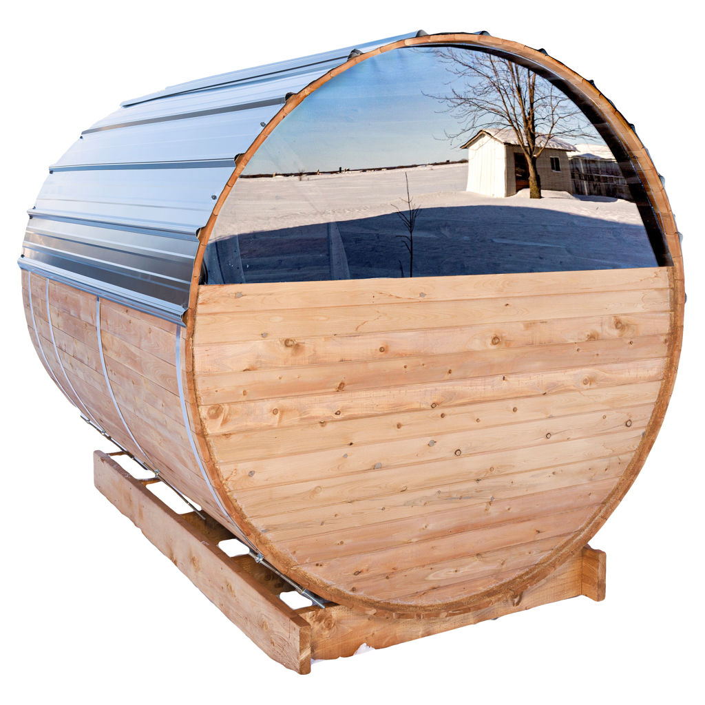 Sauna baril en cèdre épais 6.5' x 10' avec poêle électrique, demi-verre panoramique et vestiaire Sauna Spa B6-10THICK-DL-V-E