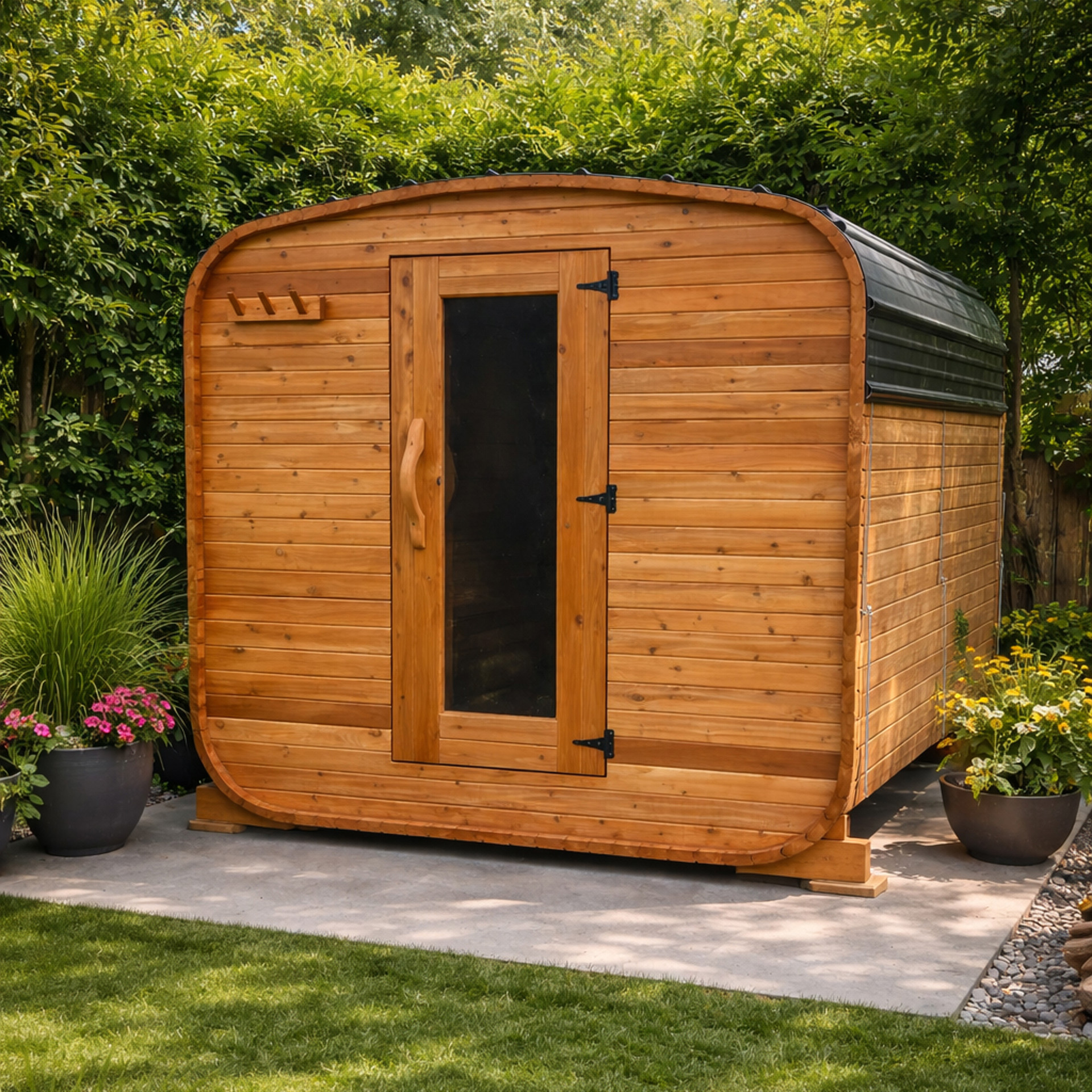 Profitez d’un espace de détente chaleureux et authentique grâce à ce sauna cube conçu en cèdre rouge de l’Ouest canadien 100 % naturel. Reconnue pour sa durabilité, sa beauté naturelle et ses excellentes propriétés thermiques, cette essence de bois contribue à créer une atmosphère enveloppante et confortable, idéale pour vos moments de relaxation.