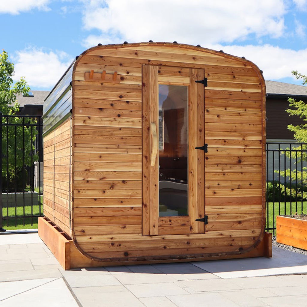Profitez d’un espace de détente chaleureux et authentique grâce à ce sauna cube conçu en cèdre rouge de l’Ouest canadien 100 % naturel. Reconnue pour sa durabilité, sa beauté naturelle et ses excellentes propriétés thermiques, cette essence de bois contribue à créer une atmosphère enveloppante et confortable, idéale pour vos moments de relaxation. La présence d’un vestiaire intégré ajoute une zone pratique pour se préparer, se changer ou déposer ses effets personnels avant et après chaque séance.