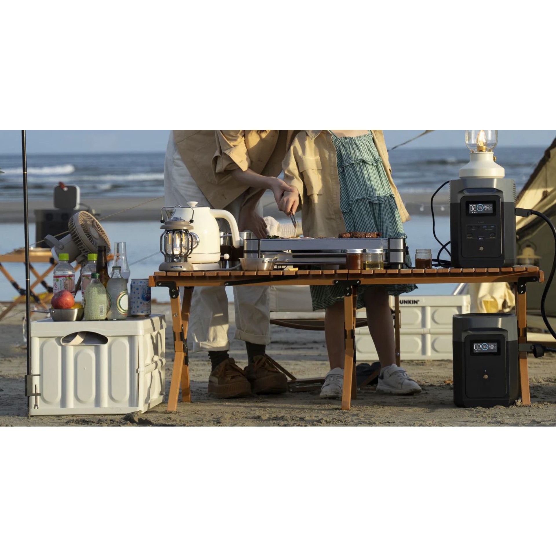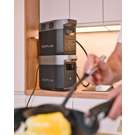 DELTA 2 et sa batterie supplémentaire se chargent et se déchargent à l'unisson. La recharge à partir de panneaux solaires portables, de prises secteur ou de notre générateur intelligent se fait en toute simplicité.