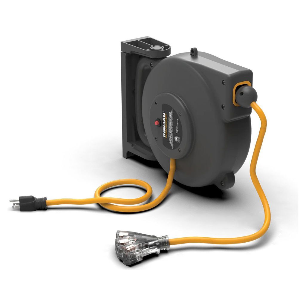 Gardez votre espace de travail bien rangé et facilement organisé grâce à notre enrouleur de rallonge rétractable de 30 pi doté de prises éclairées.