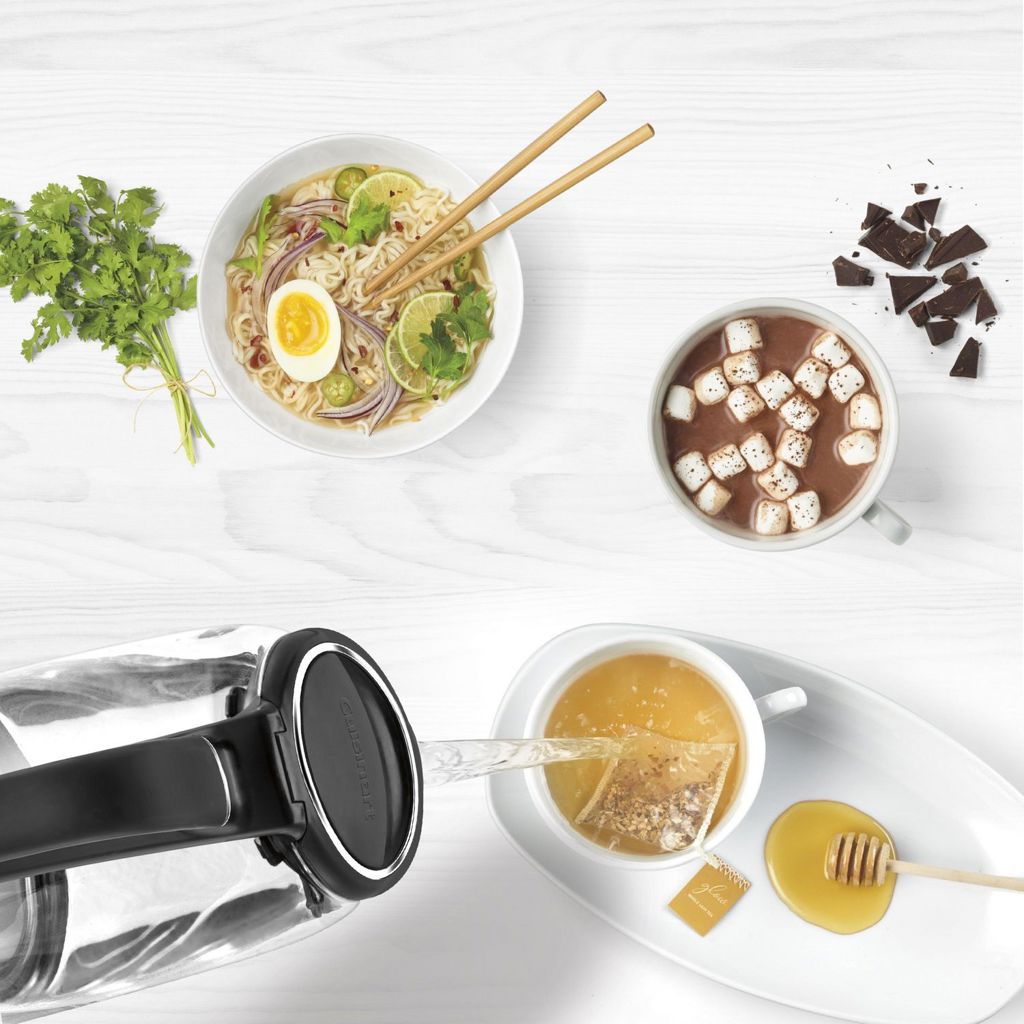 Que ce soit pour chauffer de l'eau pour un thé parfait de l'après-midi, préparer du cacao chaud avant le coucher ou remplir une cafetière à piston pour votre café du matin, la bouilloire électrique sans fil ViewPro est toujours prête.