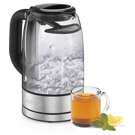 Avec une puissance de 1500 watts et un corps en verre Schott, cette bouilloire apporte jusqu'à 1,7 litres d'eau à ébullition rapidement, en appuyant sur un bouton.