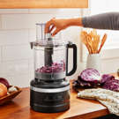 En plus d'être faciles à utiliser, tous les accessoires s'adaptent parfaitement au panier de rangement inclus, qui se niche directement à l'intérieur du bol de 13 tasses. Ou conservez les ingrédients pour une utilisation ultérieure, directement dans le bol de travail, avec le couvercle du réfrigérateur.