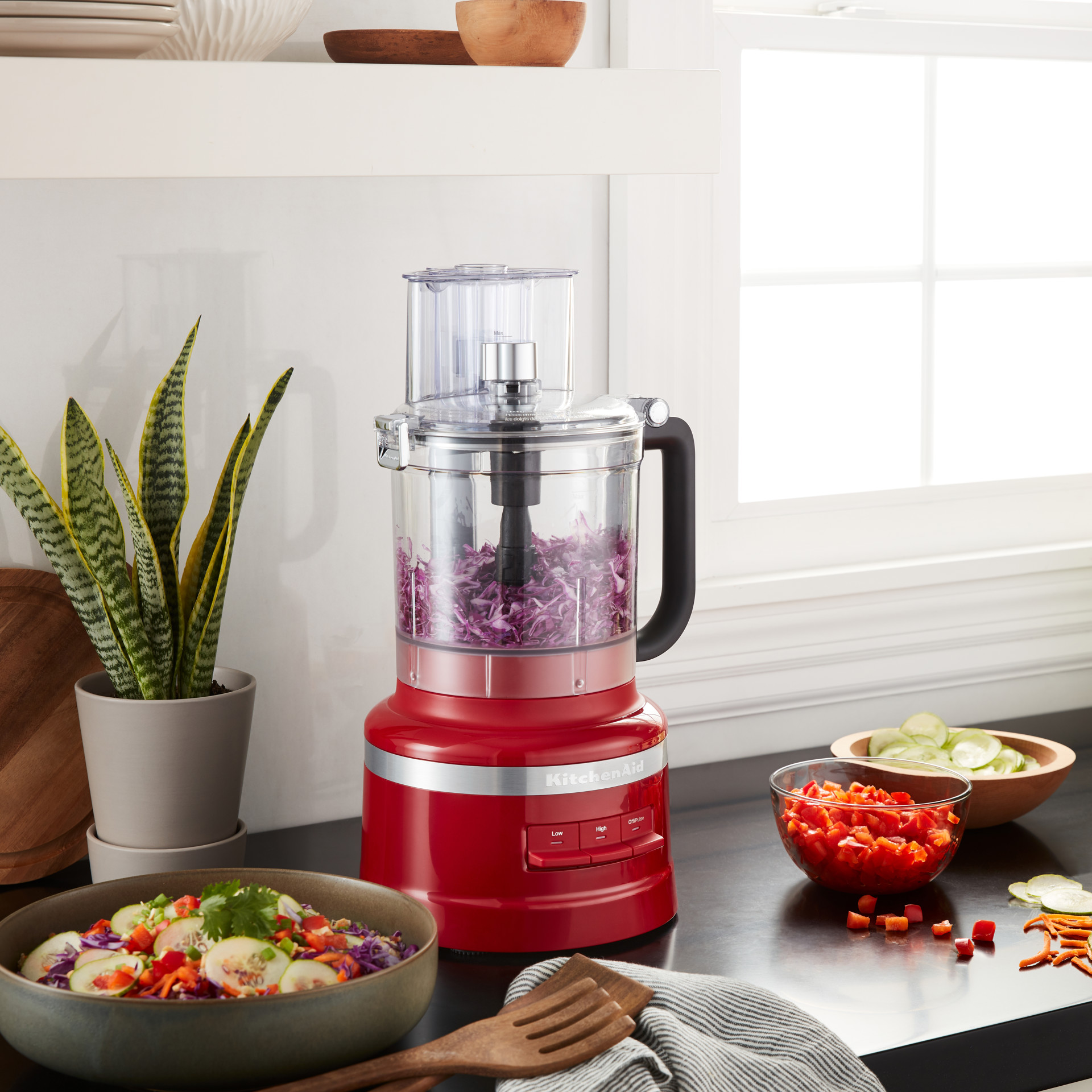 Hachez, râpez, tranchez avec précision, coupez en dés, pétrissez, mélangez et réduisez en purée tout, des légumes frais aux fromages, pâtes, sauces, salsa et bien plus encore.
