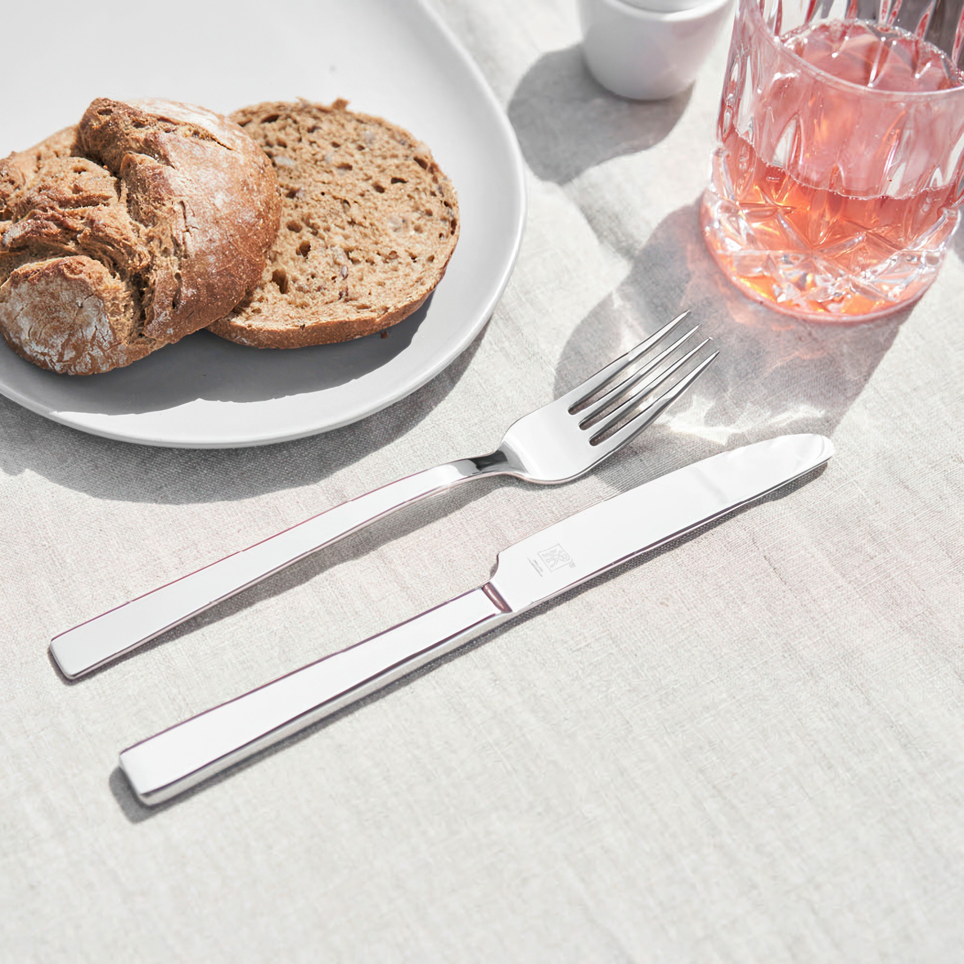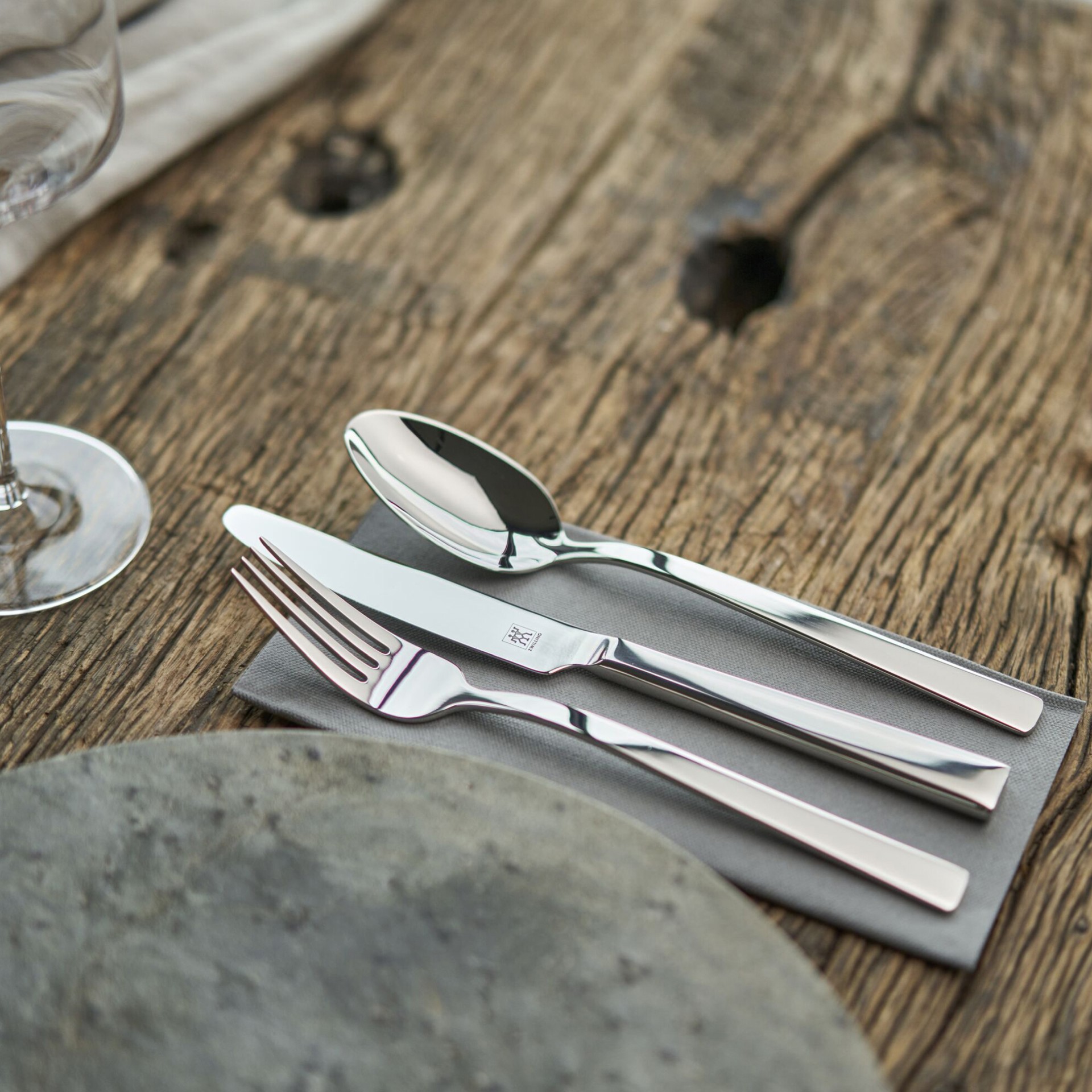 ZWILLING J.A. Henckels est un nom synonyme de coutellerie de qualité supérieure depuis 1731. Nos couverts perpétuent cet héritage de longue date et cette tradition de design, d'excellence et d'expertise. Chaque pièce est fabriquée en acier inoxydable 18/10 de haute qualité. Les couteaux de table et les couteaux à steak sont forgés pour une précision de coupe supérieure. Fabriqués conformément à des normes de qualité strictes, tous les couverts ZWILLING présentent des surfaces et des bords soigneusement polis. Le calibre élevé et la taille importante assurent un équilibre parfait et une sensation de qualité dans la main. Les couverts ZWILLING peuvent être lavés au lave-vaisselle.