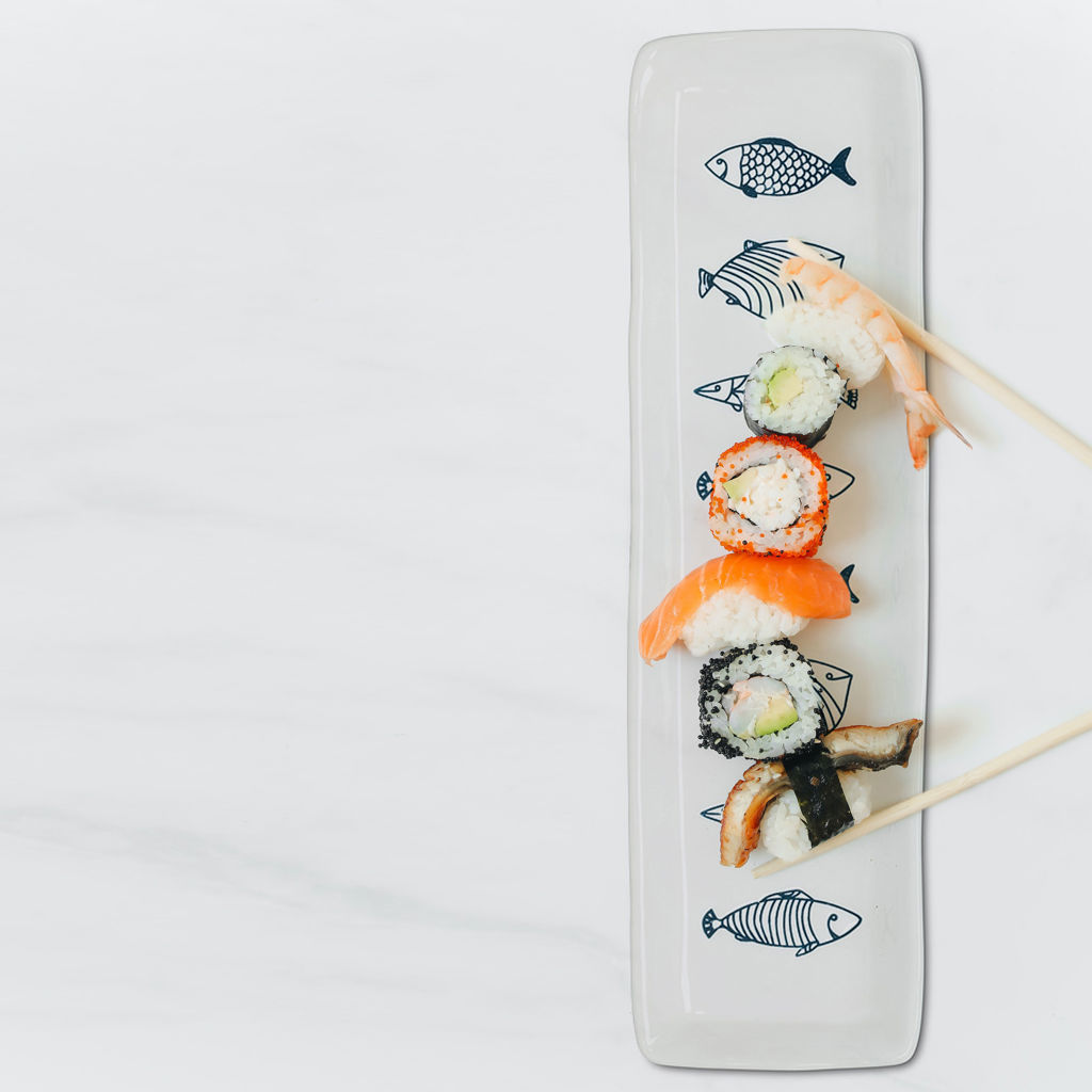 Profitez de plus que de simples fruits de mer avec cette longue et mince assiette de poisson rectangulaire.
