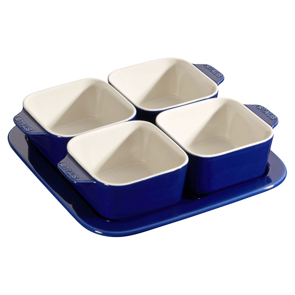 Disponible en bleu, l'ensemble apportera une touche de couleur à votre table à manger. Servez des apéritifs avec style grâce à ce service à tapas Staub.