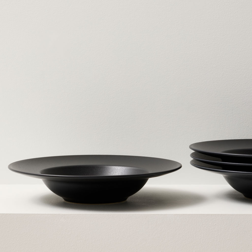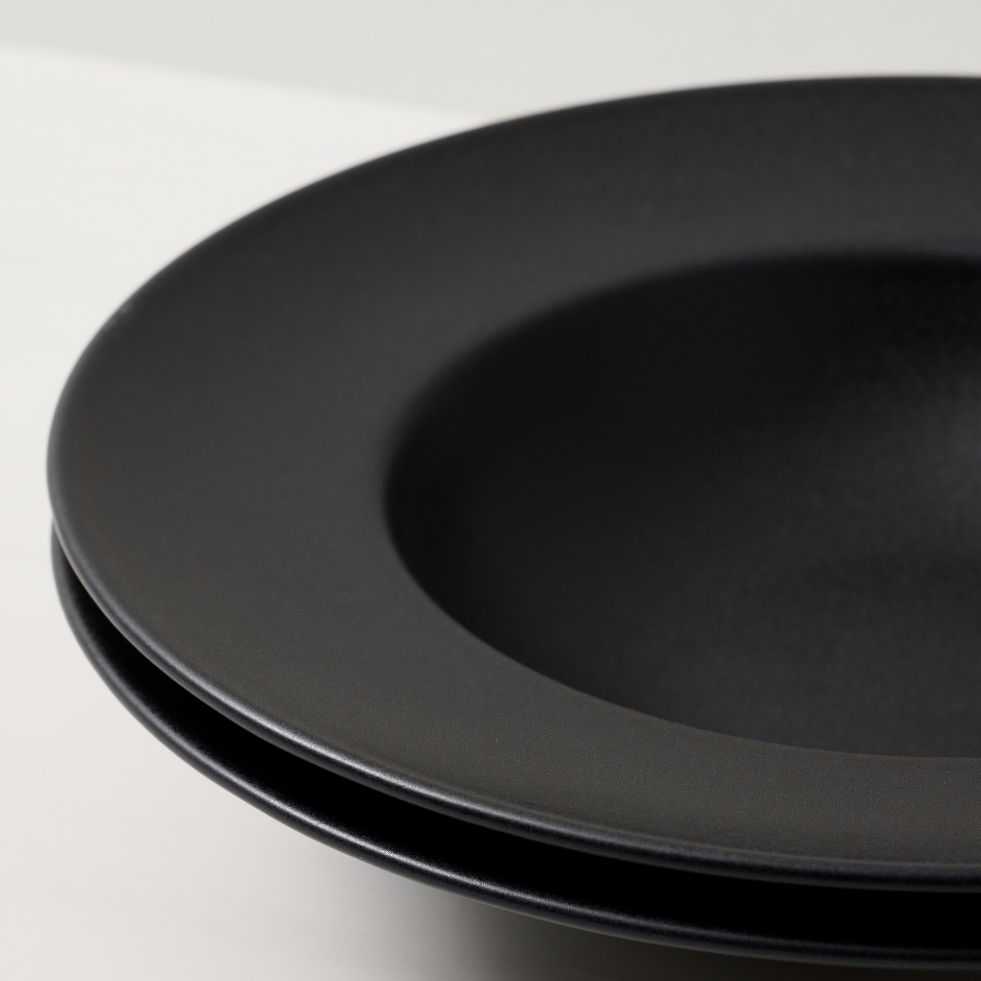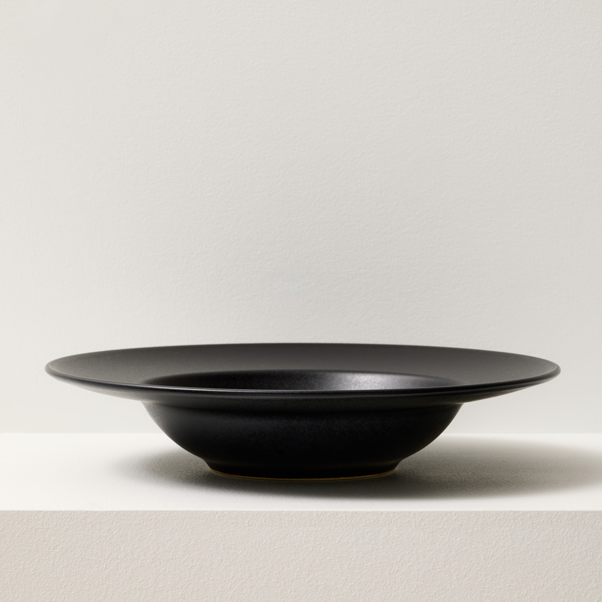 Sa surface est accentuée par une finition lisse et non texturée, légèrement relevée avec un rebord sur le bord, qui donne un caractère subtil à cette simple assiette gourmande en pierre.
