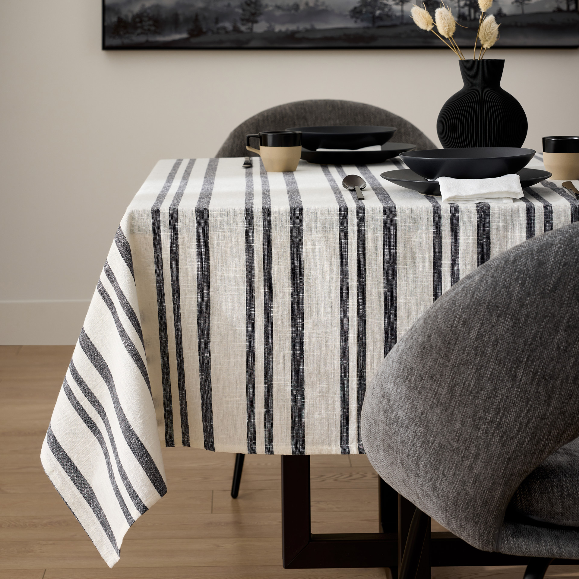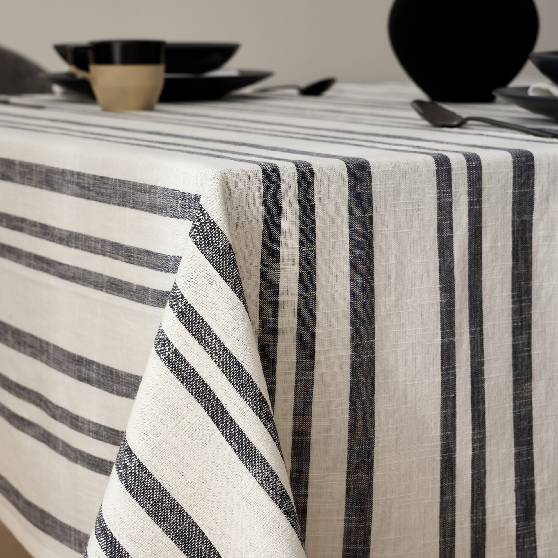 Cette nappe en coton à motif de lignes permet d'ajouter une touche de classe et d'élégance à tout événement spécial et de créer une ambiance accueillante pour vos invités.