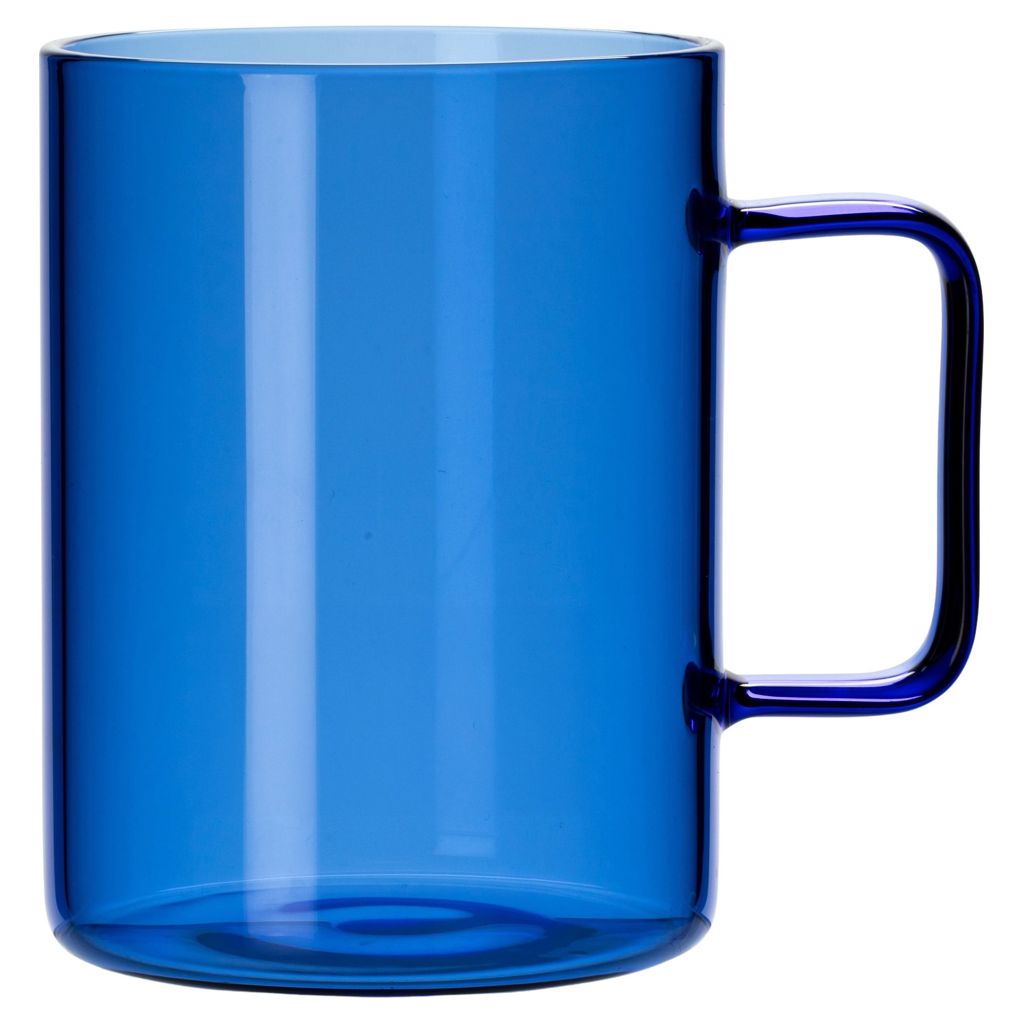 Cette tasse en verre présente des parois droites et une finition lisse pour un look contemporain.
