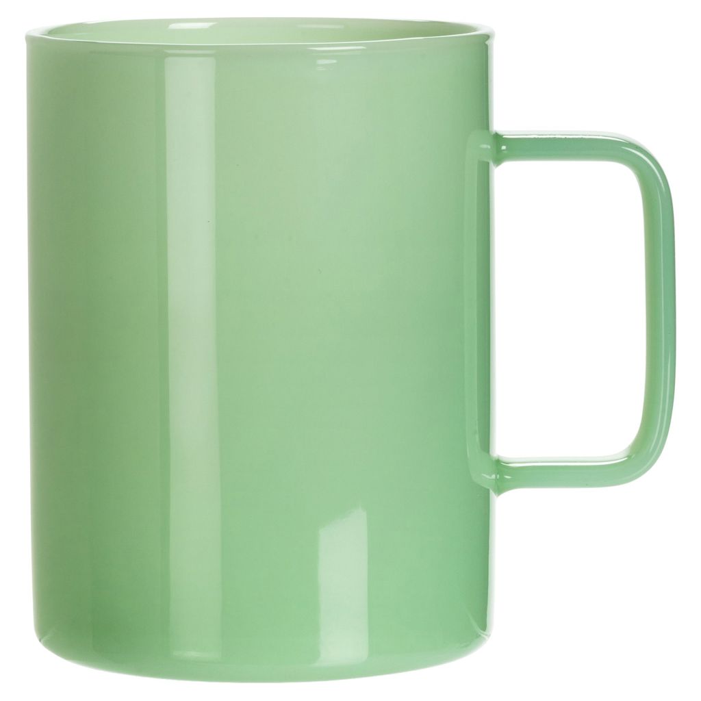 Cette tasse en verre présente des parois droites et une finition lisse pour un look contemporain.