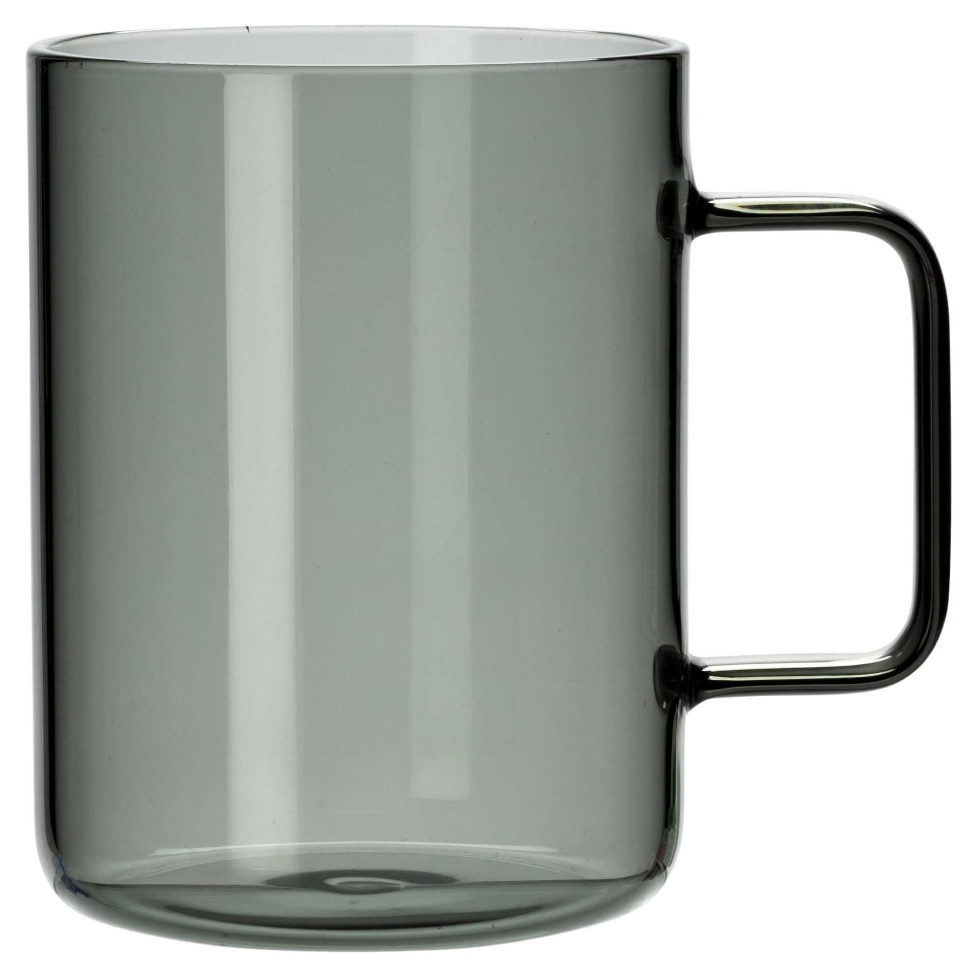 Cette tasse en verre présente des parois droites et une finition lisse pour un look contemporain.