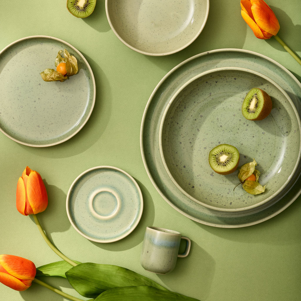 Placez votre table sur une note élevée, moderne et élégante. Un émail réactif subtil donne à la collection de vaisselle  UNO son aspect artisanal et sa sensation lisse comme la pierre.