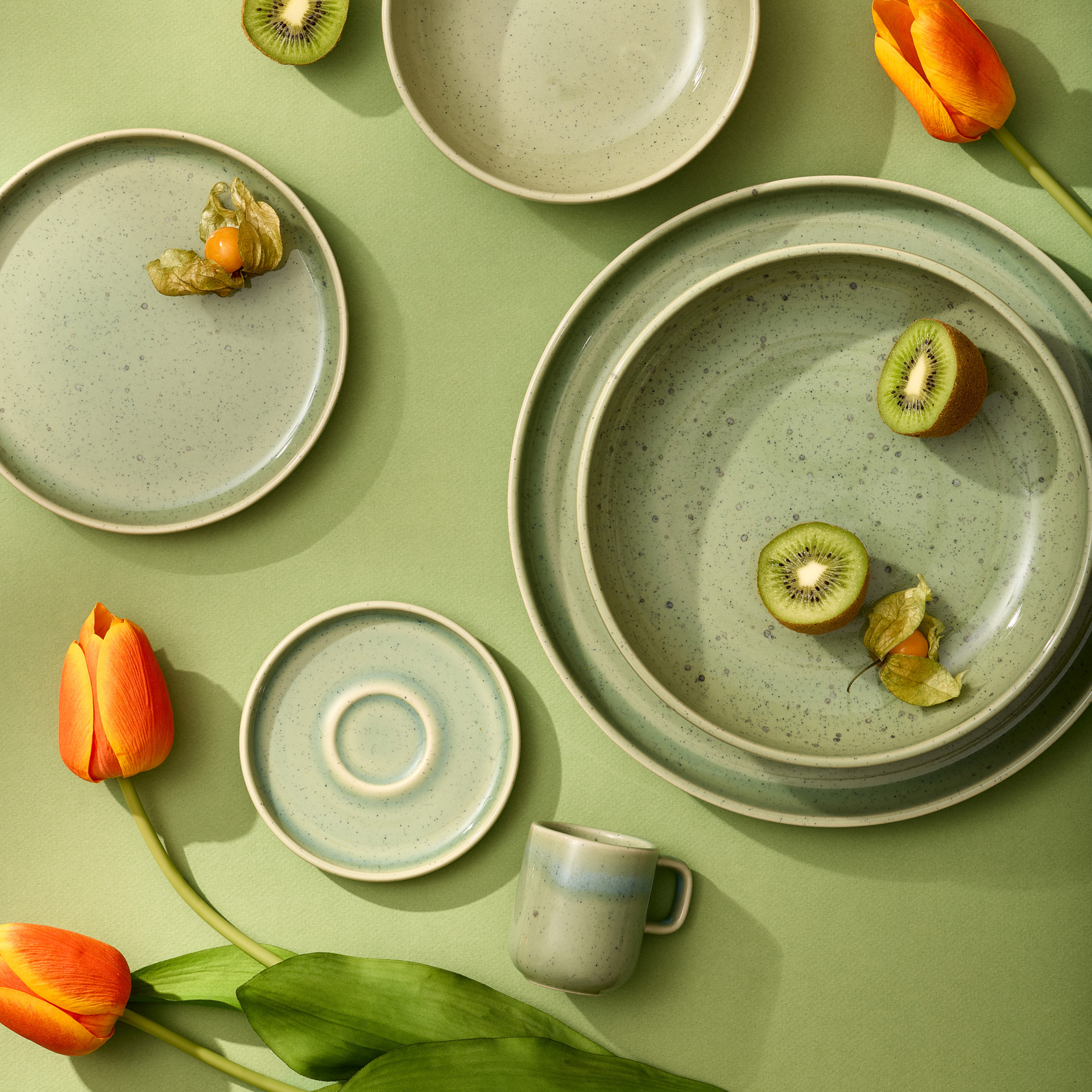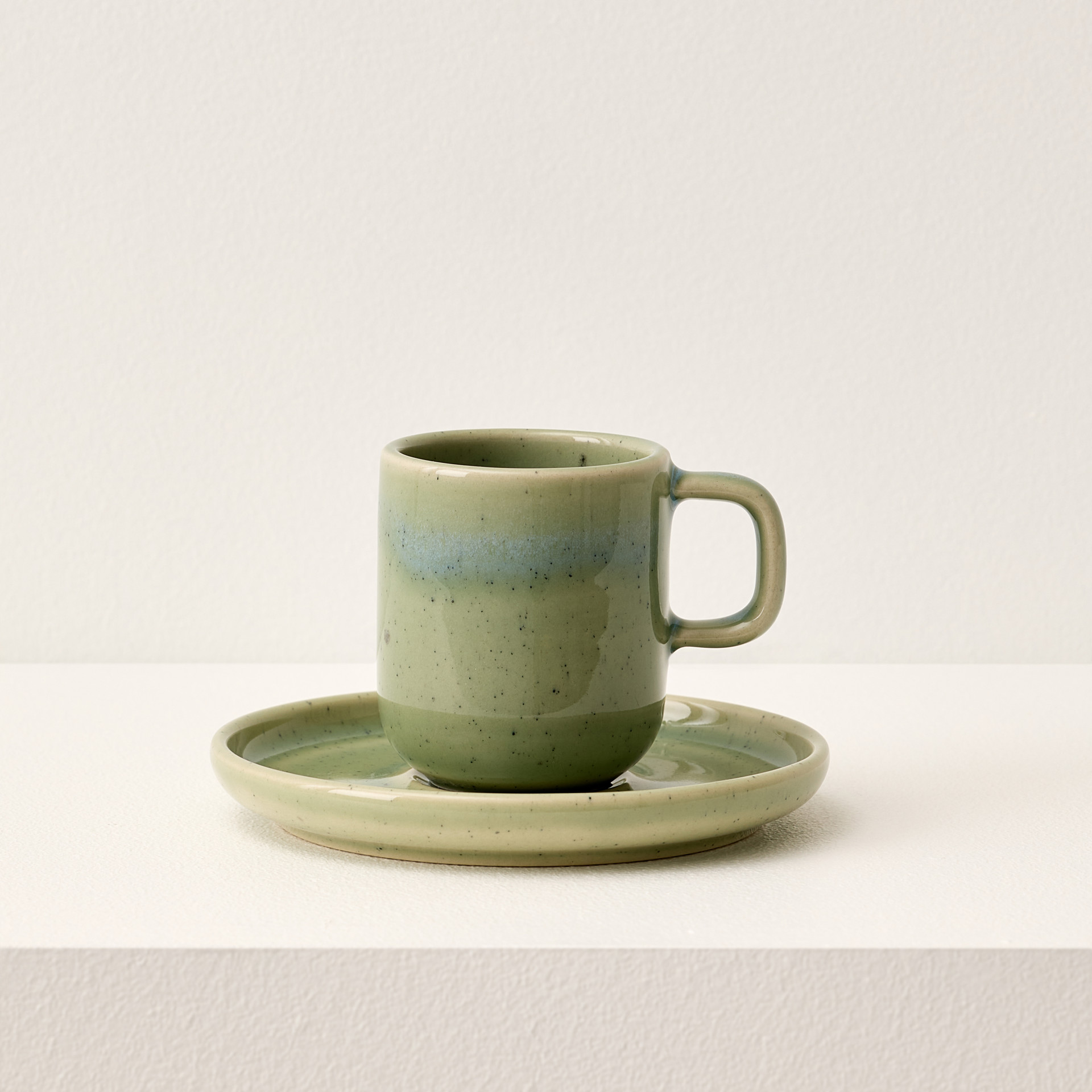 Cette tasse et soucoupe à café ou espresso Uno Speckle Green ajoutera une touche moderne à votre routine quotidienne.