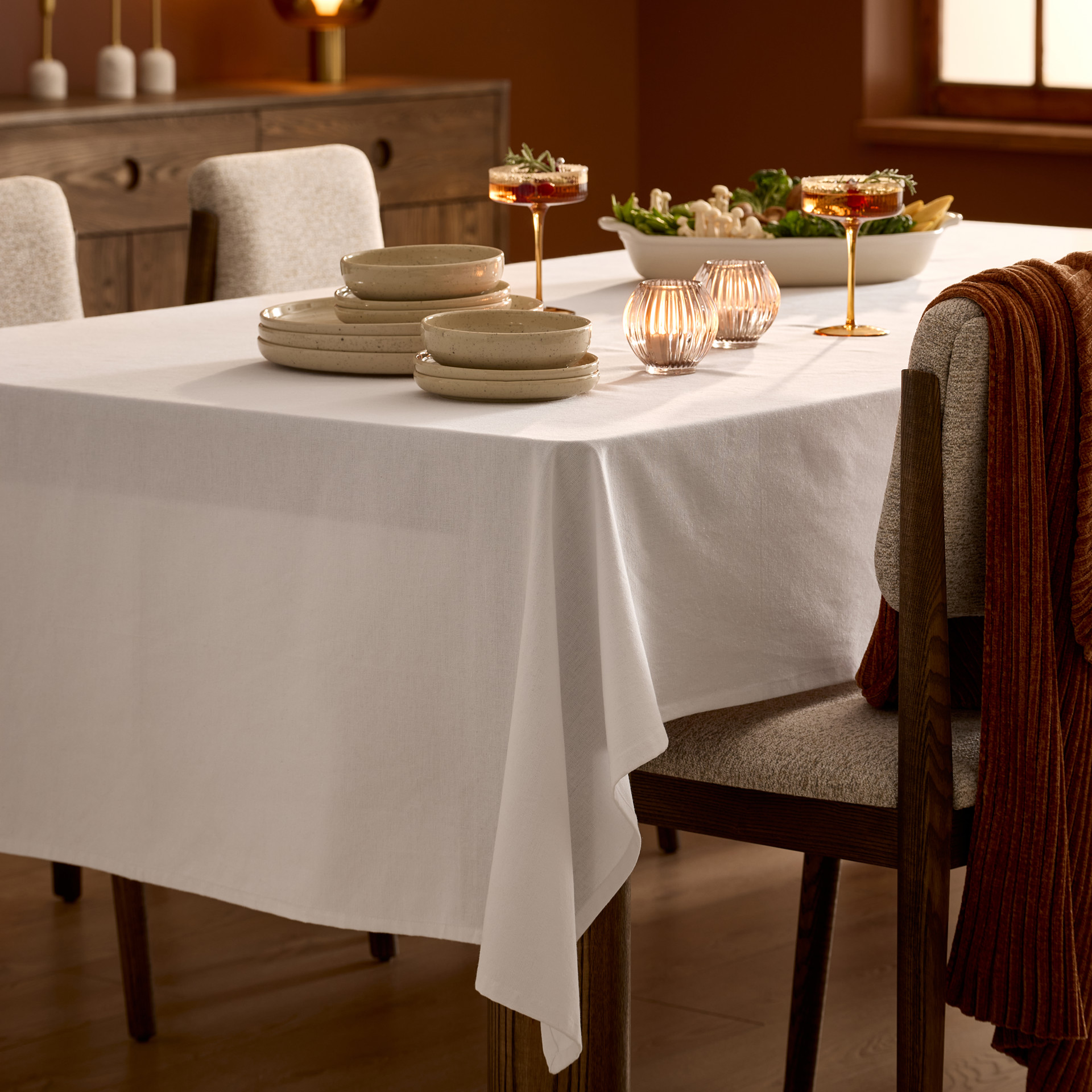 Apportez une touche de pureté à votre table avec cette nappe blanche en coton naturel. Douce, résistante et facile d’entretien, elle convient aussi bien aux repas du quotidien qu’aux grandes occasions.