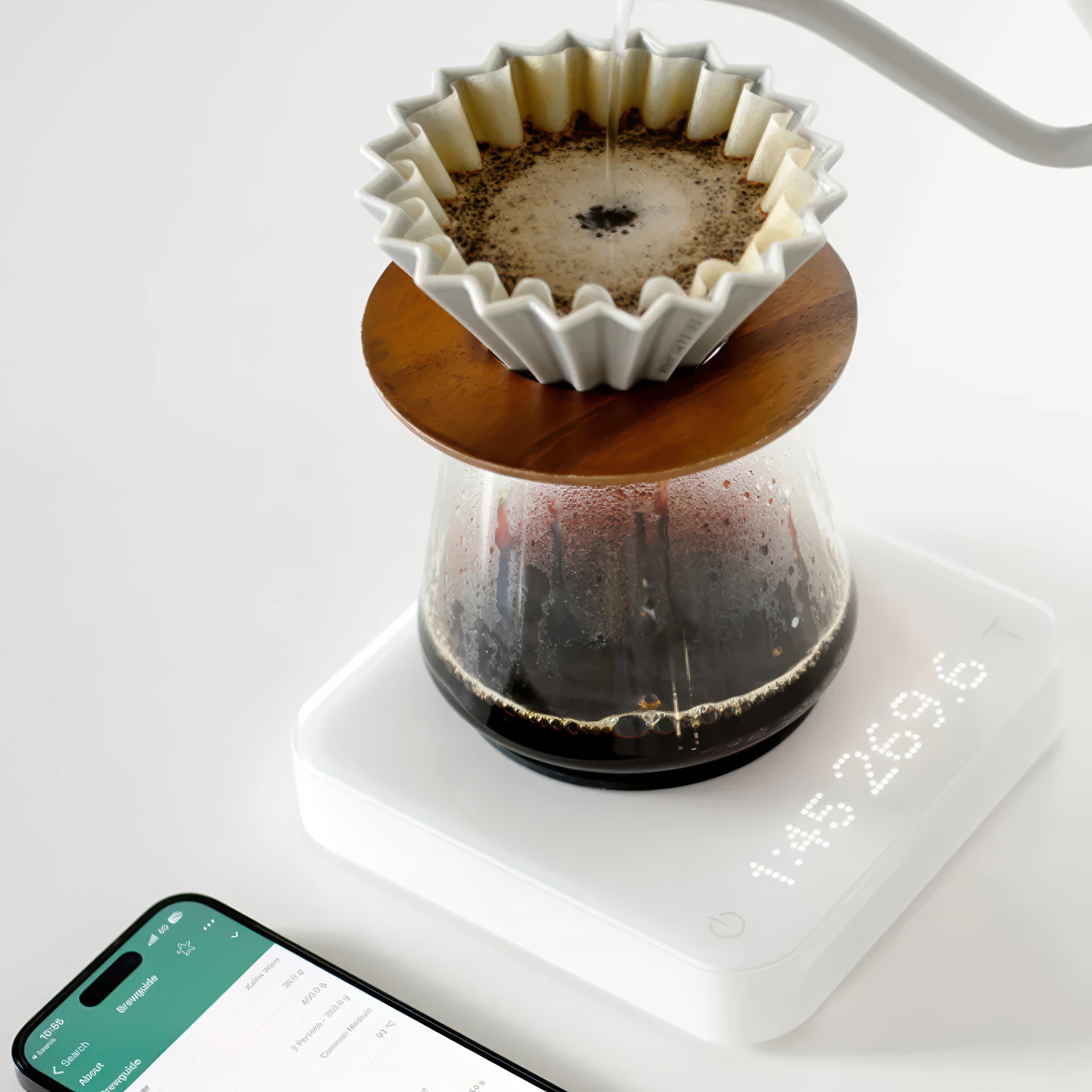 Écoutez le poids et le temps de préparation par un son ou une voix. L'indicateur de débit en temps réel et la notification sonore peuvent vous aider à améliorer votre technique de versement. Vous contrôlez la façon dont vous préparez votre café.