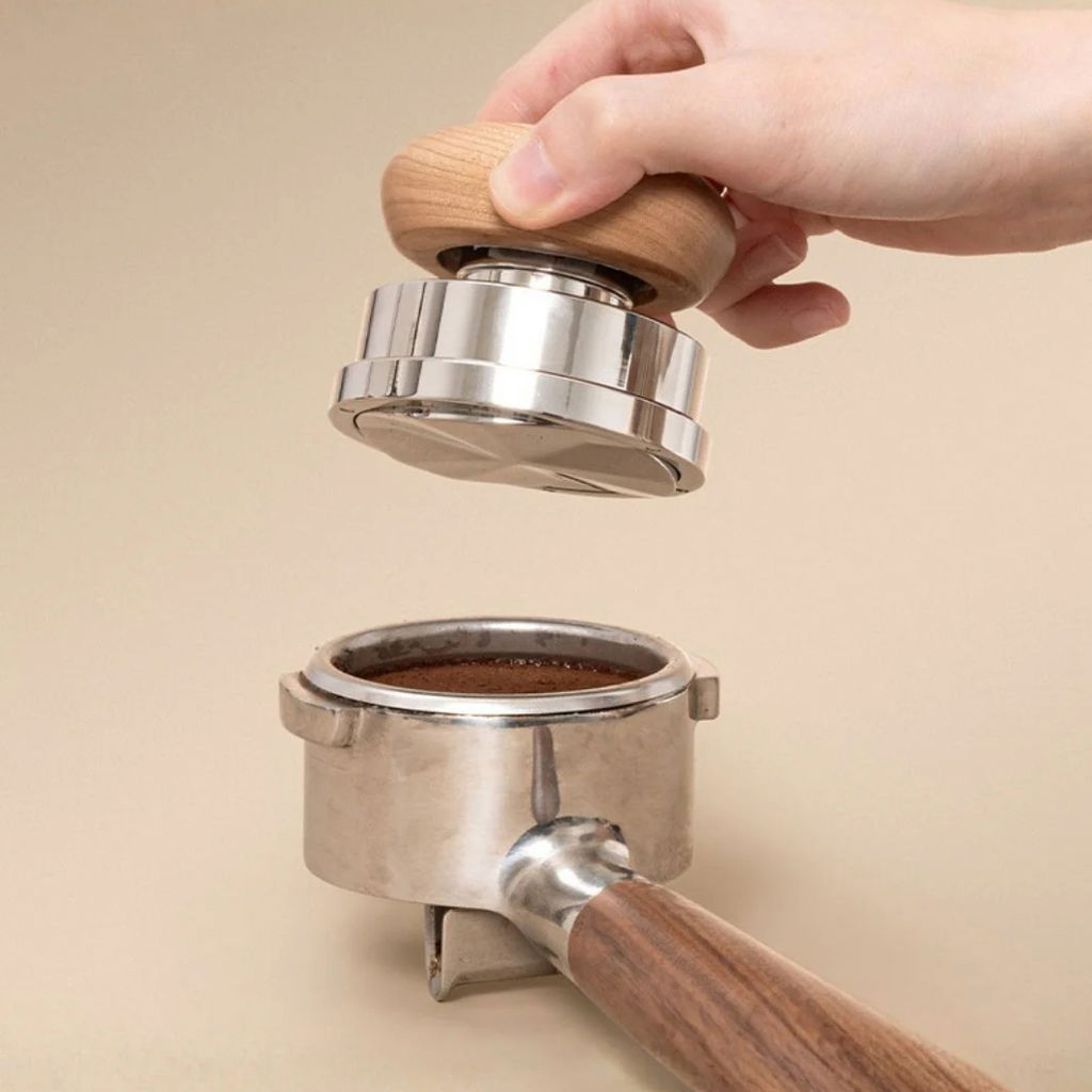 Le distributeur de café Timemore PUCKS Gravity est doté d'un aimant et d'une rotation bidirectionnelle pour préparer votre galette de café sans effort avant le tassage.