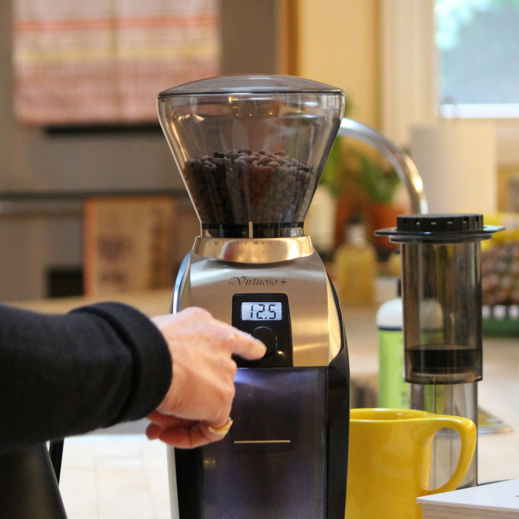 Le Virtuoso™+ simplifie la préparation de votre café dans un emballage élégant et compact. Réglez votre minuterie au dixième de seconde et réglez votre mouture avec la fraise de précision M2. Appuyez sur Démarrer et remplissez la pièce du parfum du café de spécialité fraîchement moulu.