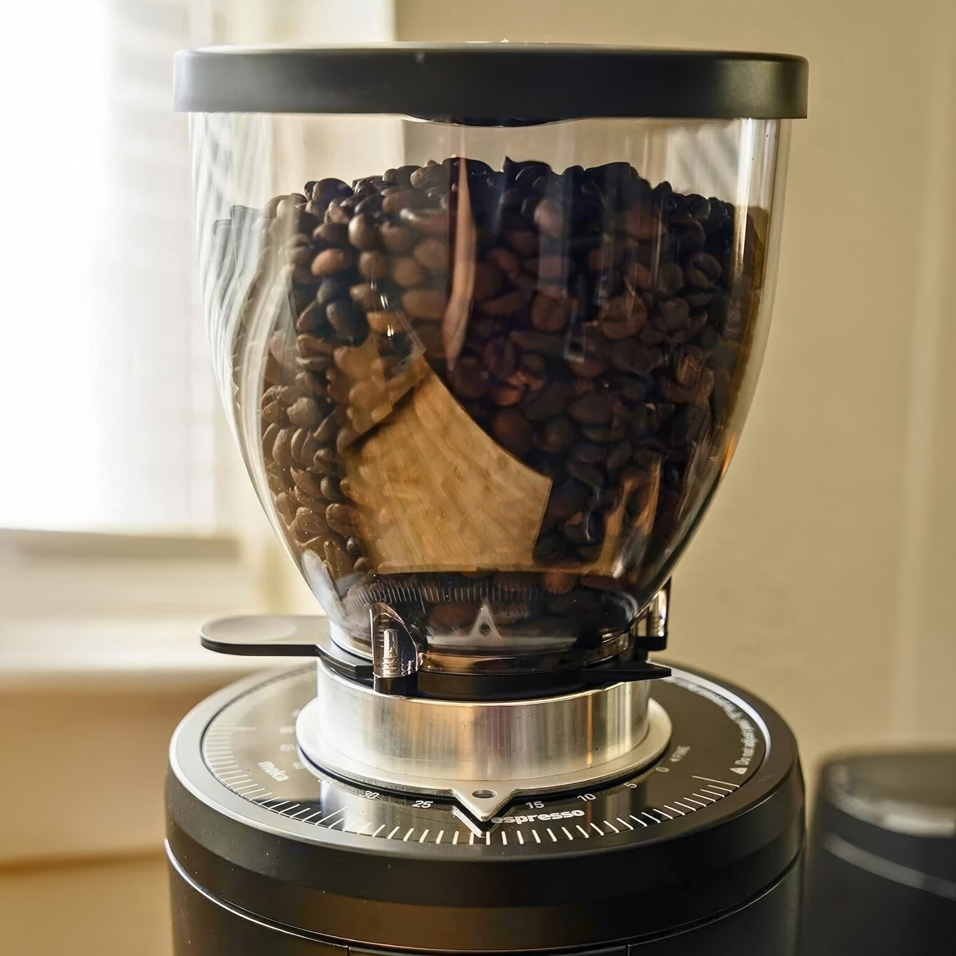 Pour les baristas amateurs qui préfèrent ne pas utiliser de dose unique et qui ont un sens du timing impeccable, le DF83 V3 comprend également une grande trémie et un porte-filtre (ou tasse doseuse). La chambre de broyage au design unique du DF83 permet une très faible rétention, même sans l'utilisation du soufflet inclus.