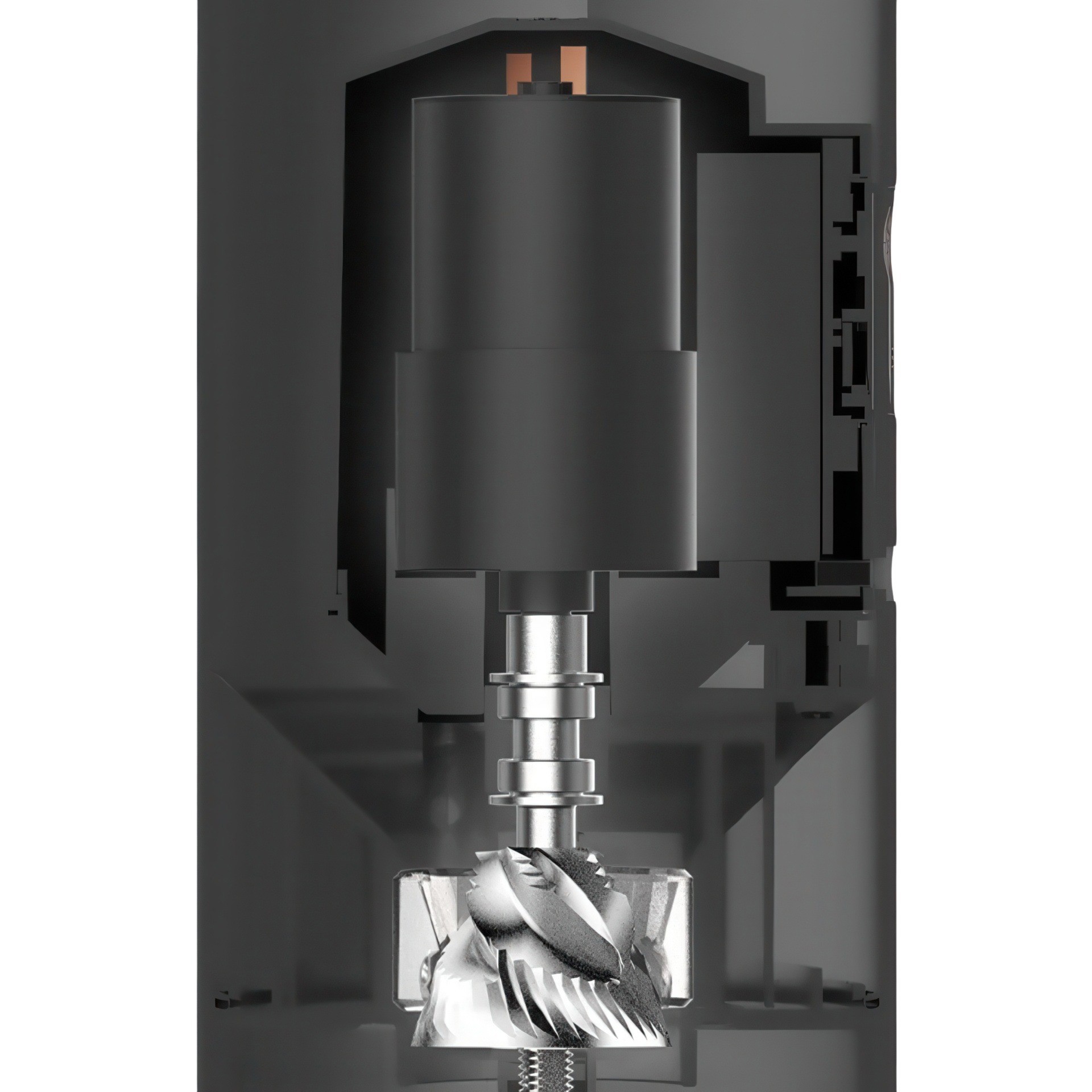 L’amélioration du Grinder GO est assurée par la technologie intelligente Auto-Swing qui détecte les bavures obstruées et les fait pivoter d’avant en arrière trois fois, délogeant le bouchon, avant de revenir à une rotation normale vers l’avant. Cette fonction de protection réduit les contraintes mécaniques et prolonge la durée de vie du moteur et du jeu de meules.