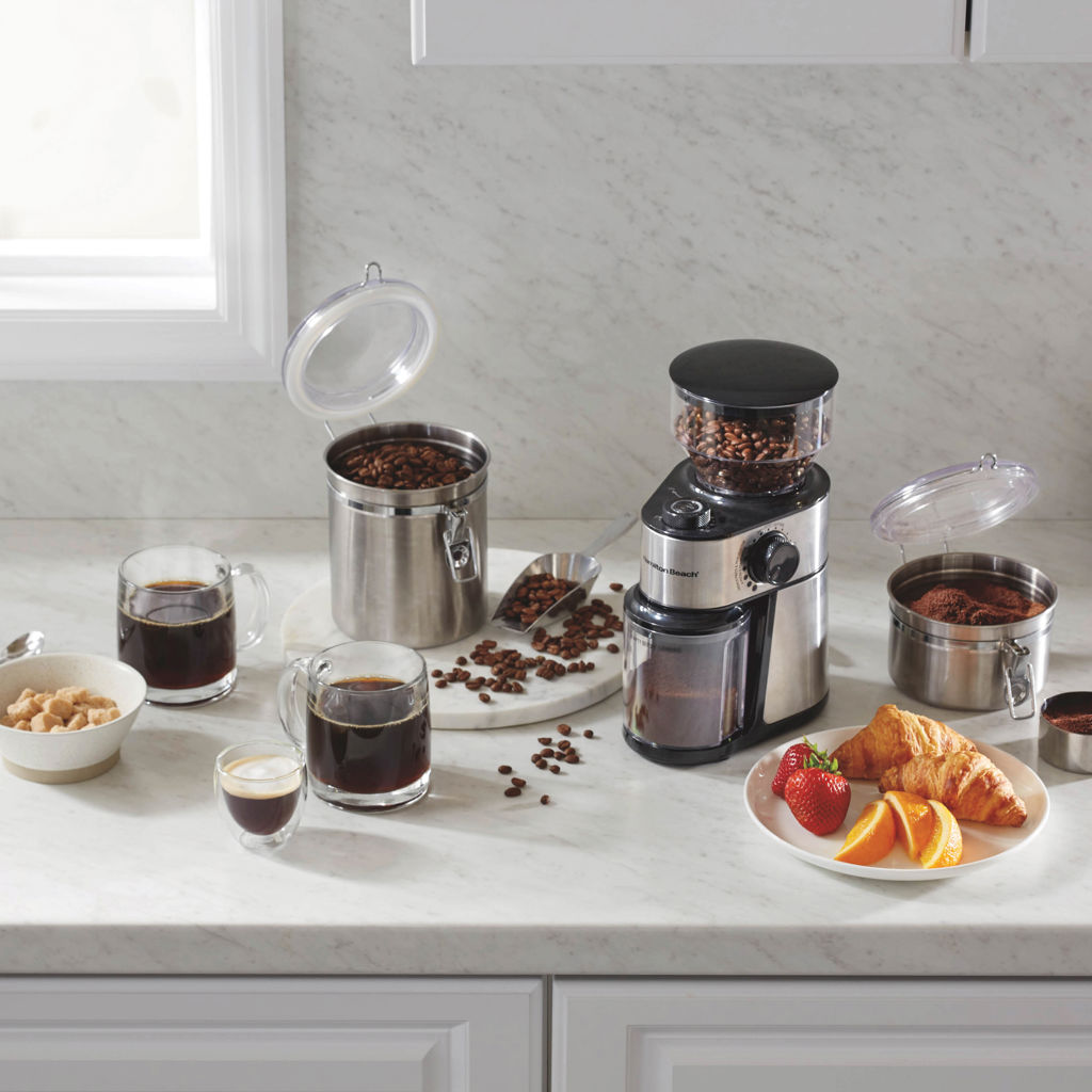 Pour savourer un café d'une fraîcheur incomparable et aux arômes intenses, moudre les grains entiers avant l'infusion est la solution idéale. Le moulin à café à meules Hamilton Beach® offre 18 réglages de mouture, de très fine à grossière, avec des quantités ajustables de 2 à 14 tasses.