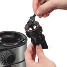Le récipient à café moulu du moulin à café est doté d'un couvercle à clipser qui vous permet de verser facilement le café moulu dans votre porte-filtre sans en renverser.