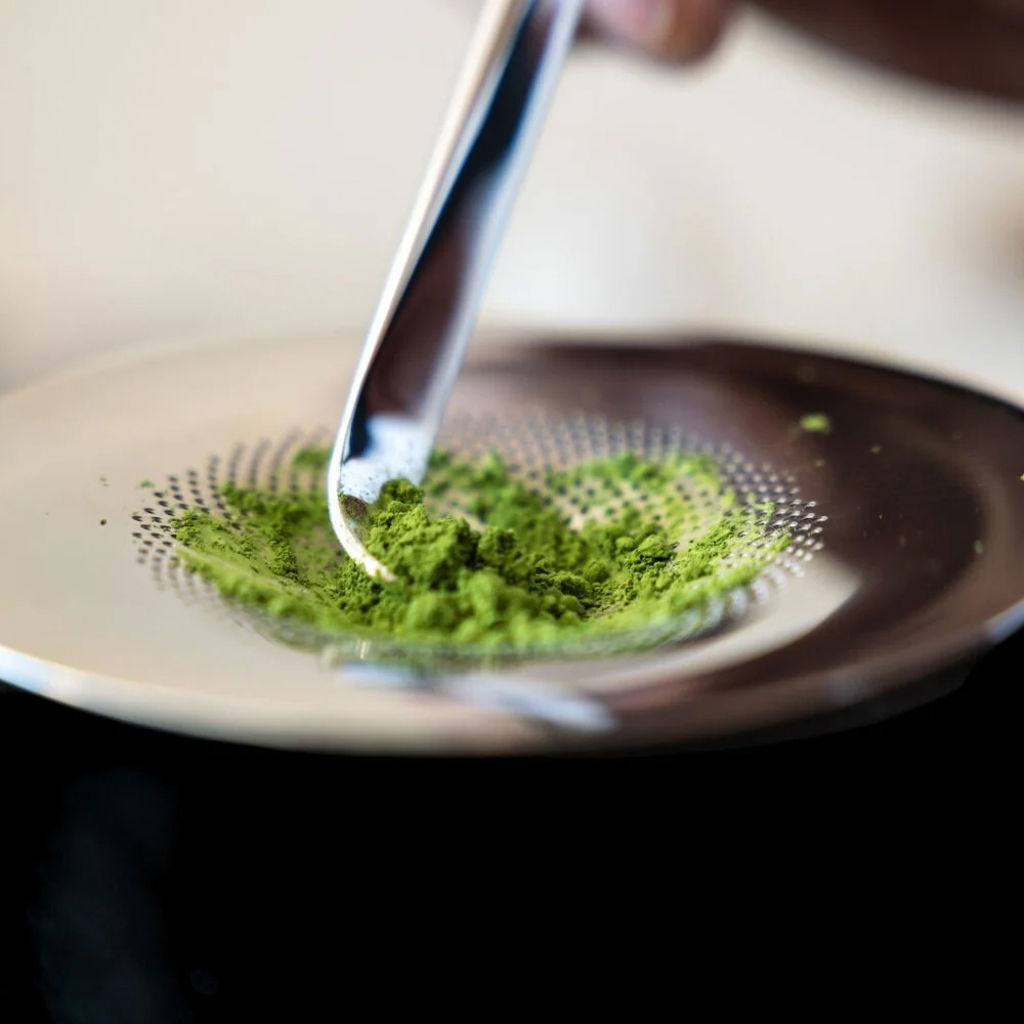 • Un chashaku et un tamis en métal élégant pour un mélange homogène