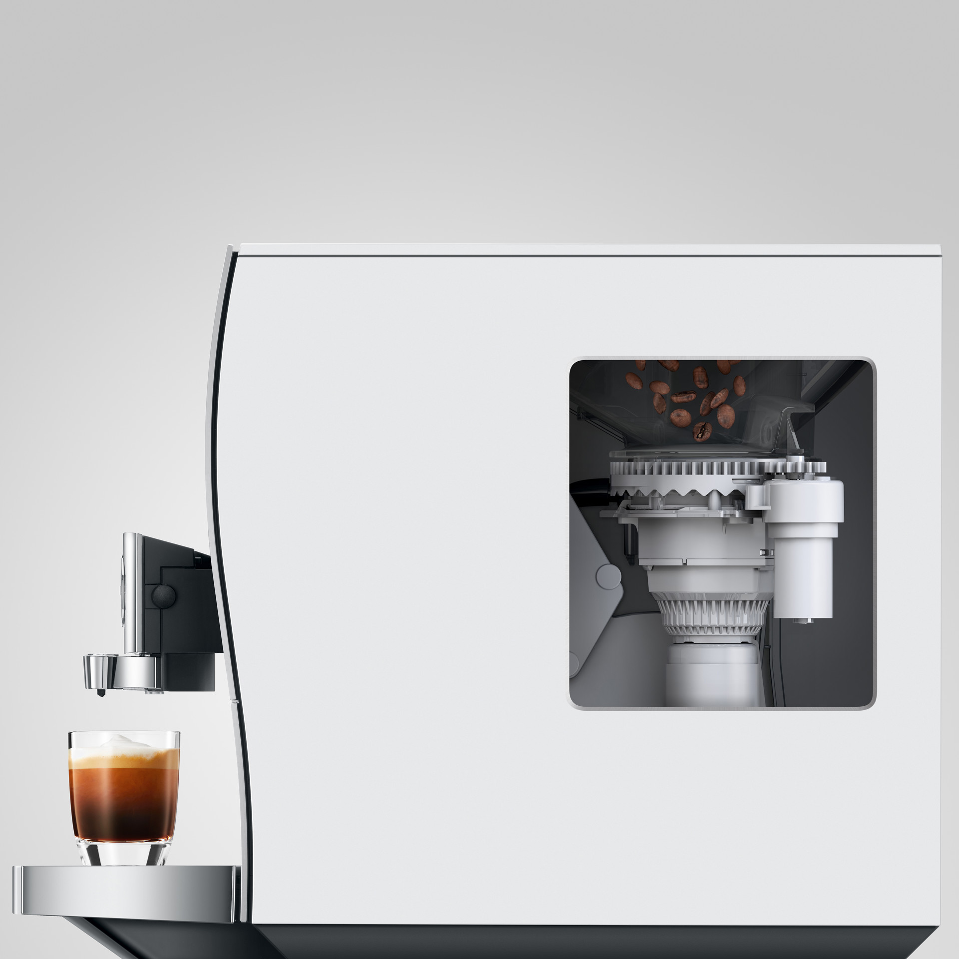 JURA a également développé le Cold Extraction Process, un nouveau procédé rafraîchissant, au sens littéral du terme. De l’eau froide est injectée à travers le café fraîchement moulu par impulsions lentes à haute pression.