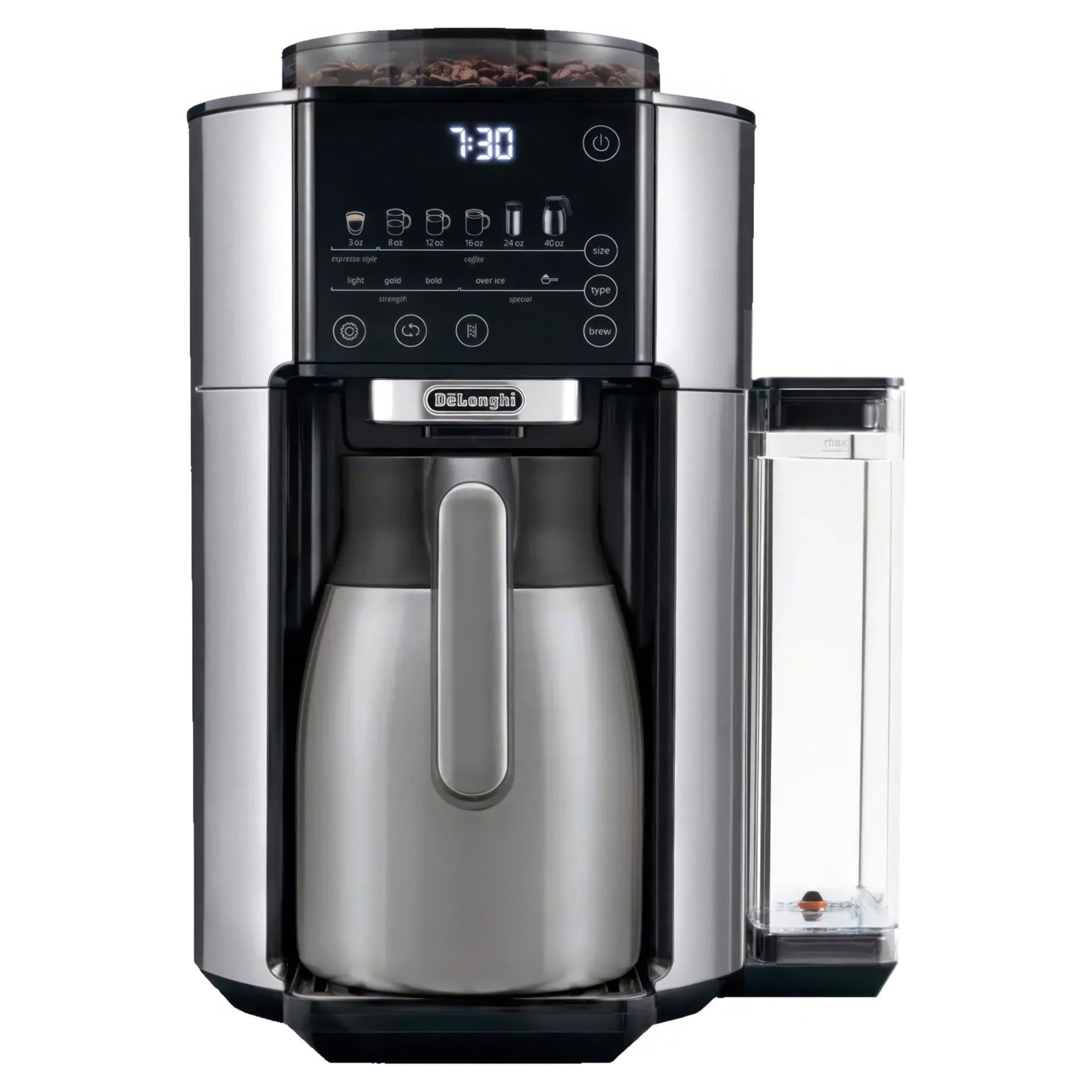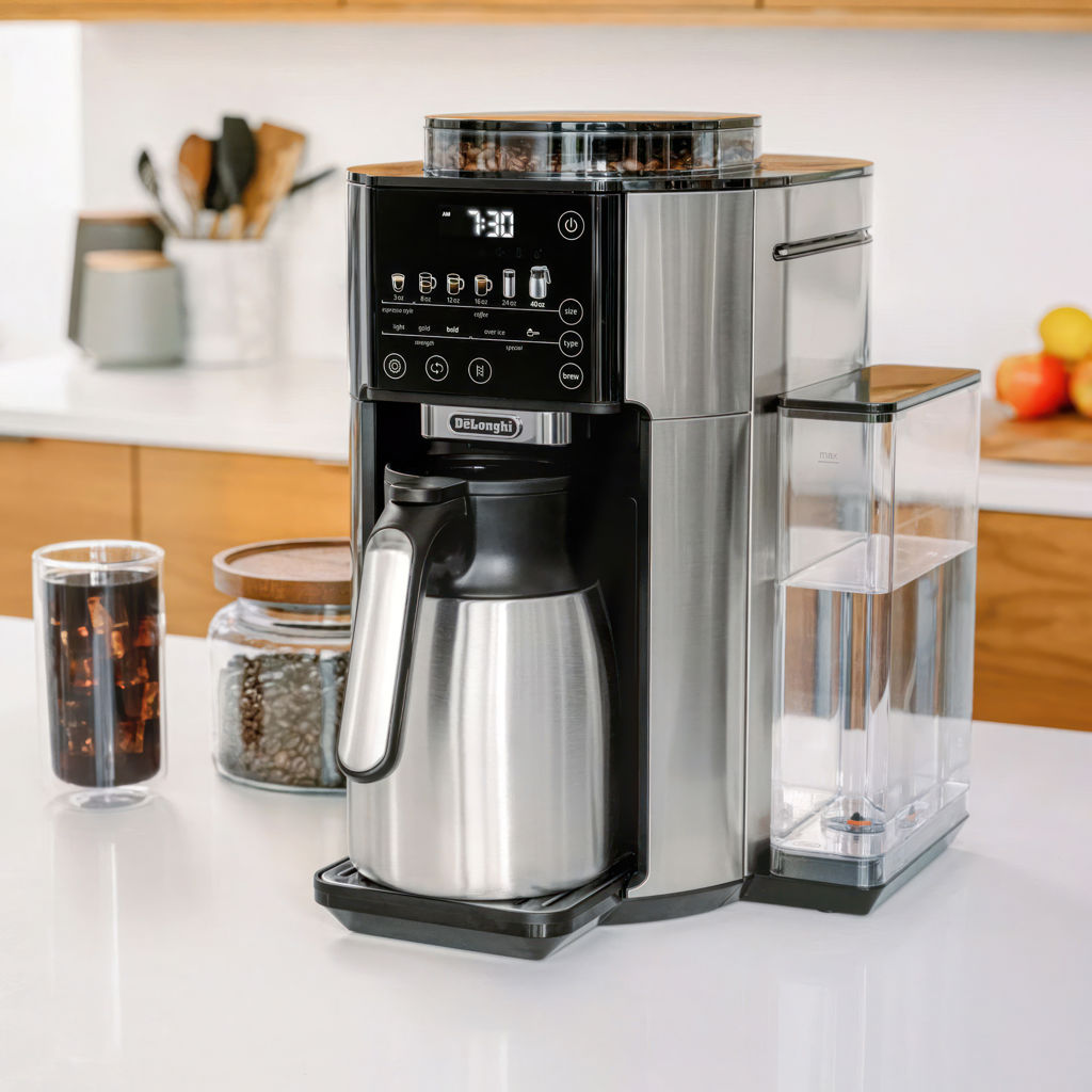La technologie brevetée d’extraction du café Bean Extract de De’Longhi permet de moudre, de doser et de préparer automatiquement le café pour révéler toutes les saveurs et tous les arômes et créer votre café parfait. Vous pouvez le personnaliser selon vos besoins avec 6 formats (90 ml, 235 ml, 355 ml, 475 ml, 700 ml ou une carafe de 1,2 L) et 5 types d’infusion (doux, doré, fort, de type espresso ou glacé). Le mode café glacé règle automatiquement la dose et l’infusion pour préparer un café glacé rafraîchissant, intense et équilibré.