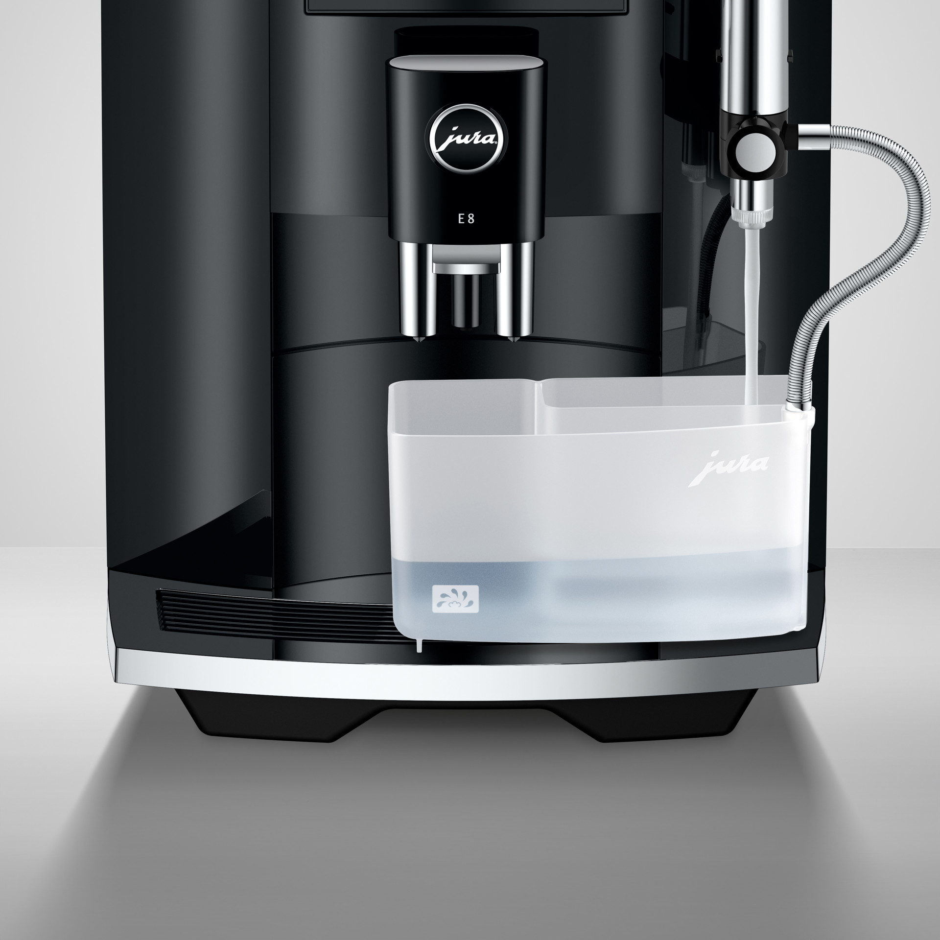 Grâce au système de fluides optimisé, même le nettoyage du système de lait s'effectue automatiquement par simple pression sur un bouton, une autre fonction E8 que l'on connaît bien des produits haut de gamme de JURA.