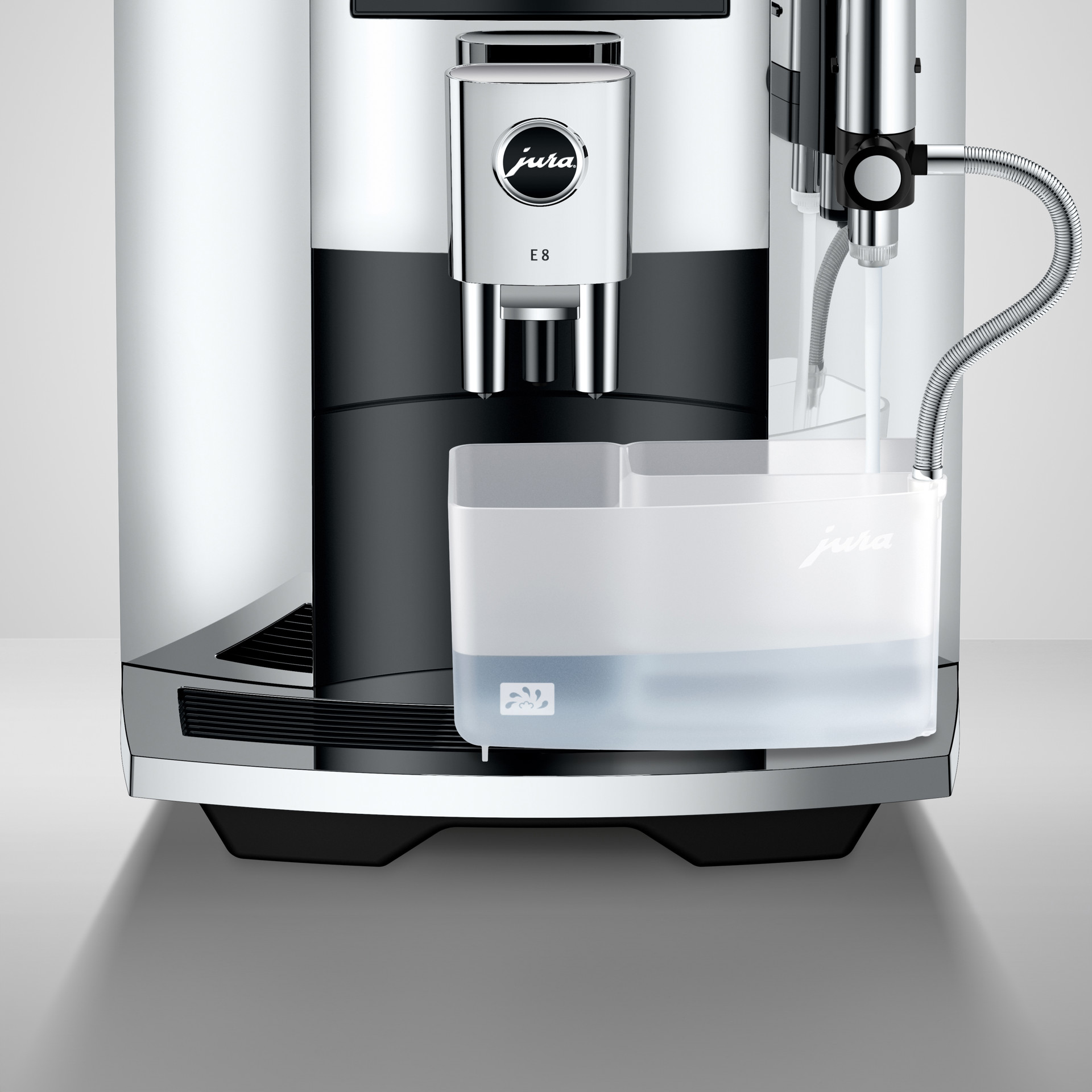 Grâce au système de fluides optimisé, même le nettoyage du système de lait s'effectue automatiquement par simple pression sur un bouton, une autre fonction E8 que l'on connaît bien des produits haut de gamme de JURA.