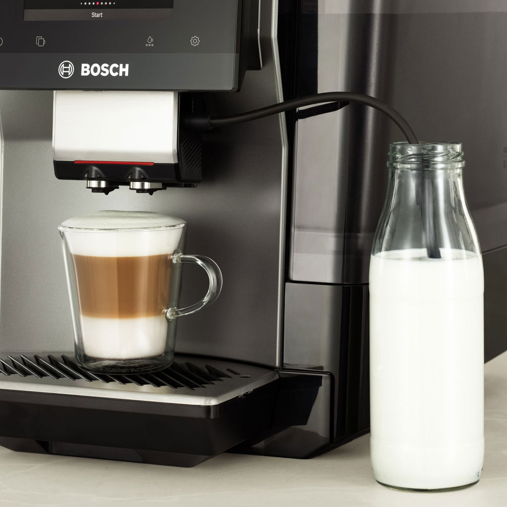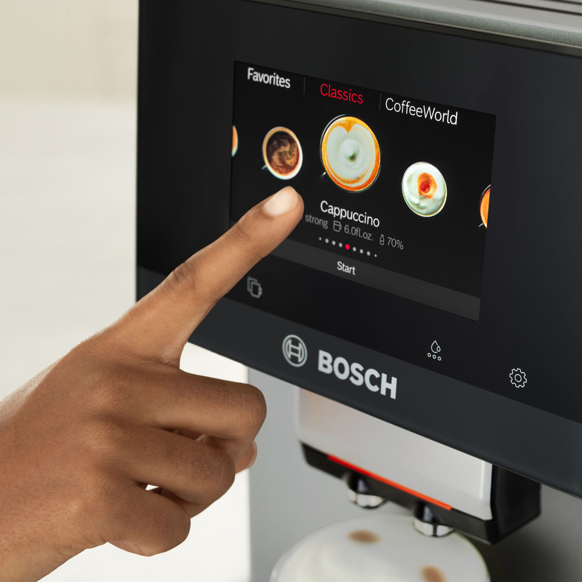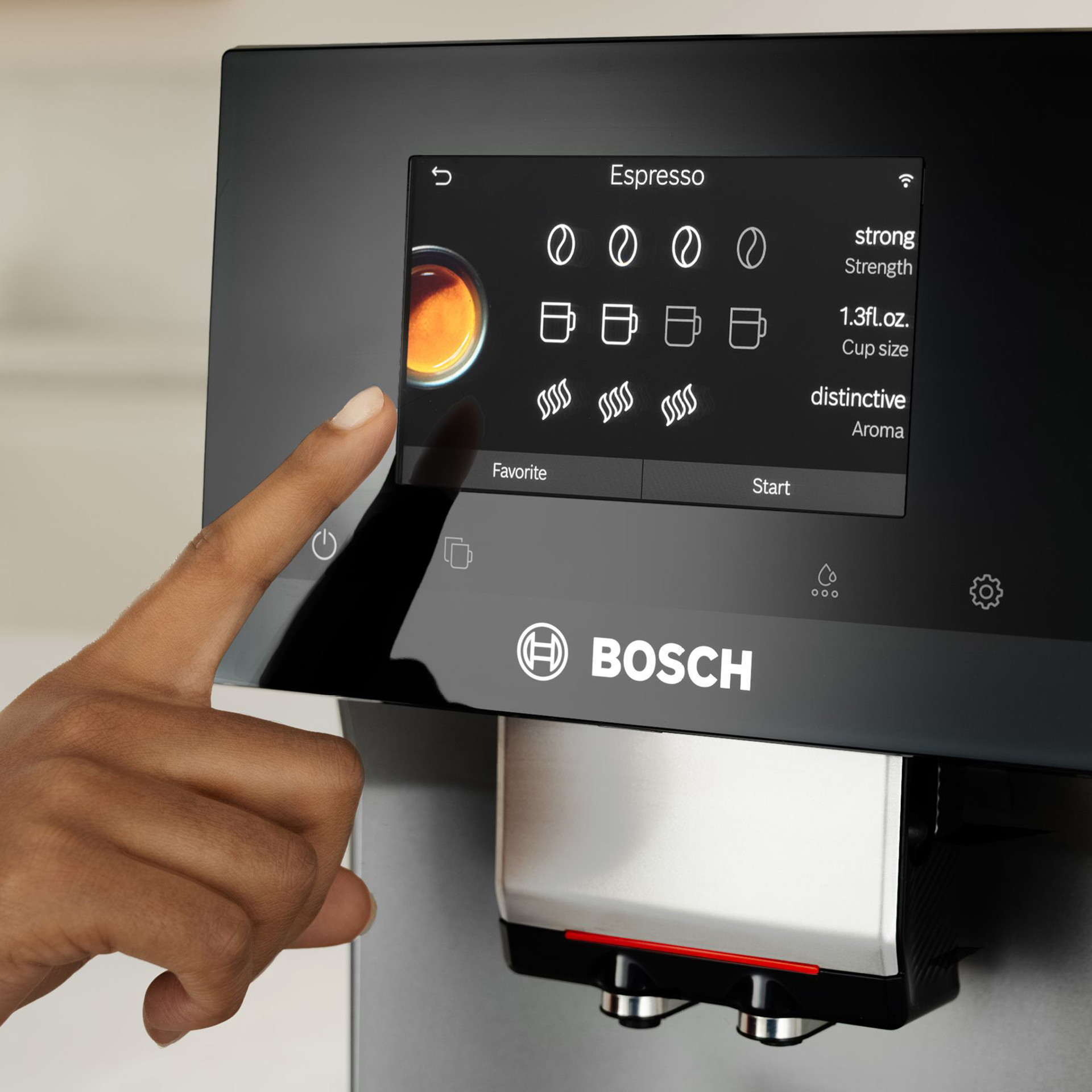 Pourquoi choisir Bosch ? Pour le café de qualité Barista, la facilité d'utilisation ainsi que ces commodités et pour la variété de café qu'elle peut vous apporter.
