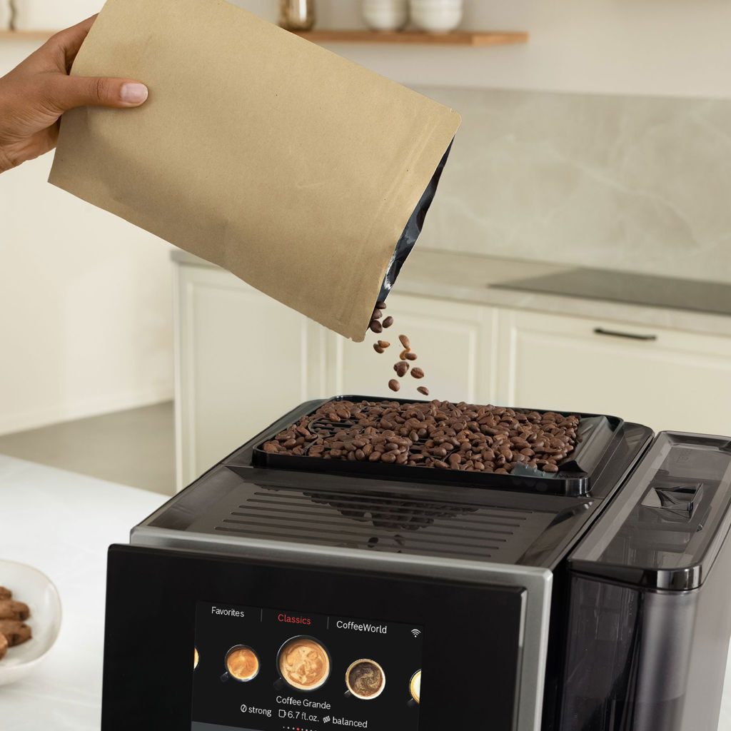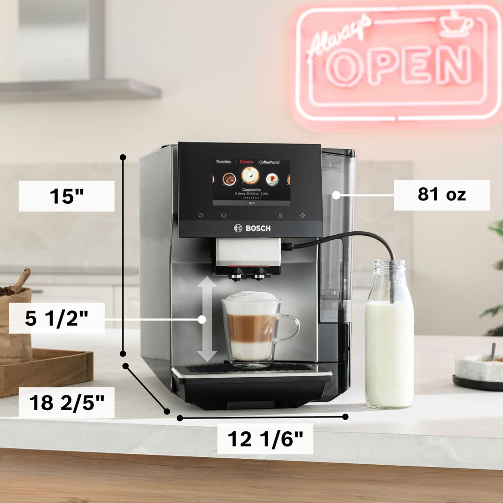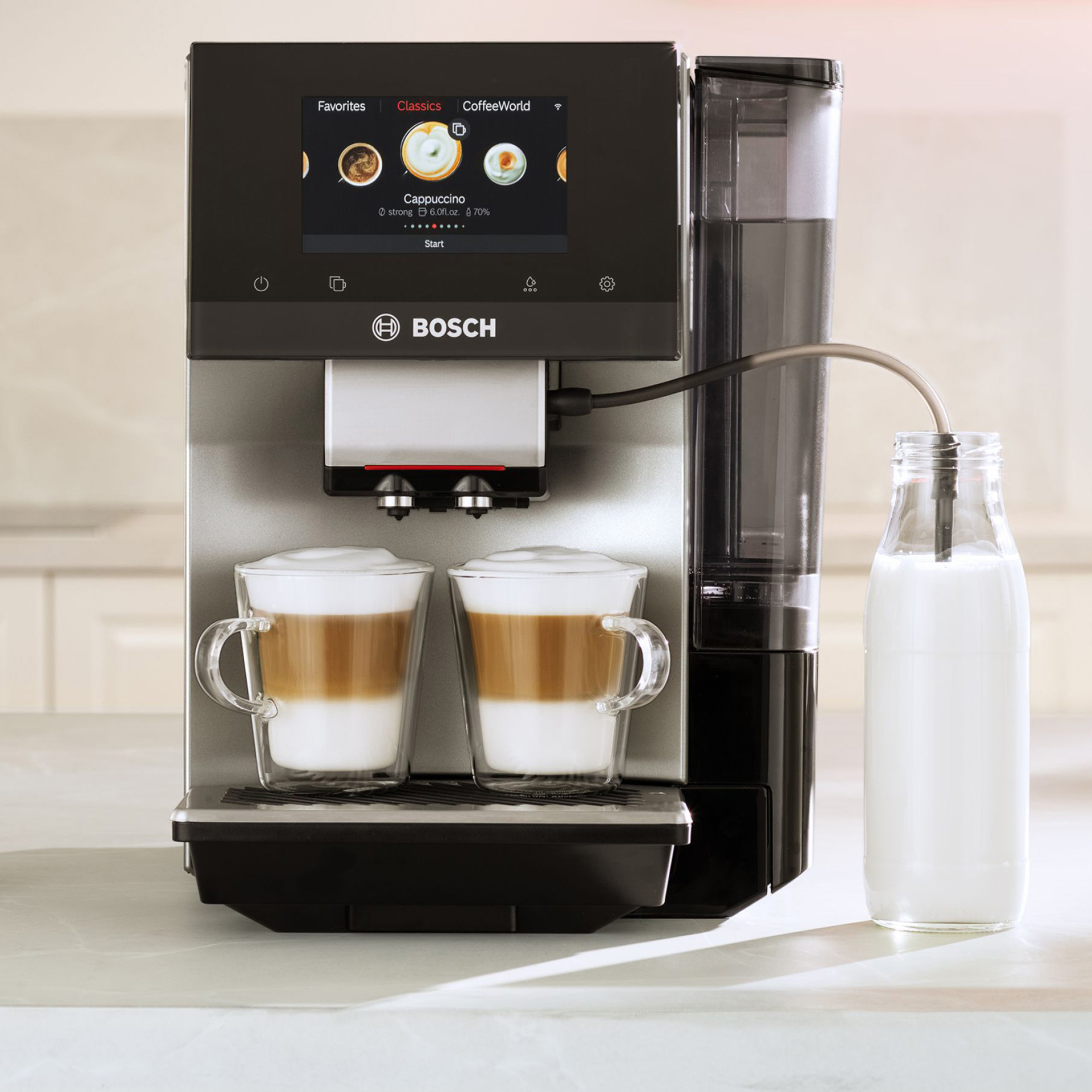 Pourquoi choisir Bosch ? Pour le café de qualité Barista, la facilité d'utilisation ainsi que ces commodités et pour la variété de café qu'elle peut vous apporter.