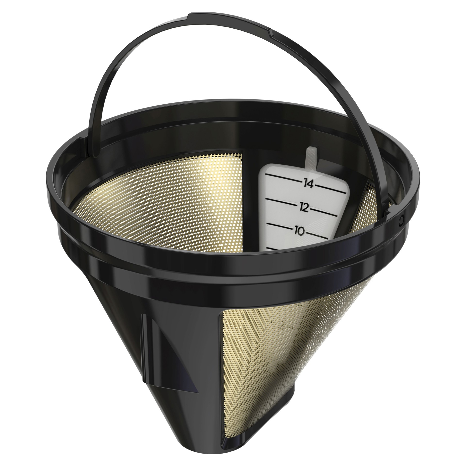 Le filtre conique réutilisable est doté de repères de niveau lumineux qui éliminent le besoin de ramasser ou de mesurer le café : il suffit de le remplir directement du sac et d'obtenir la quantité parfaite à chaque fois. La forme conique offre une extraction optimale pour un café savoureux et le filtre passe au lave-vaisselle pour un nettoyage facile.