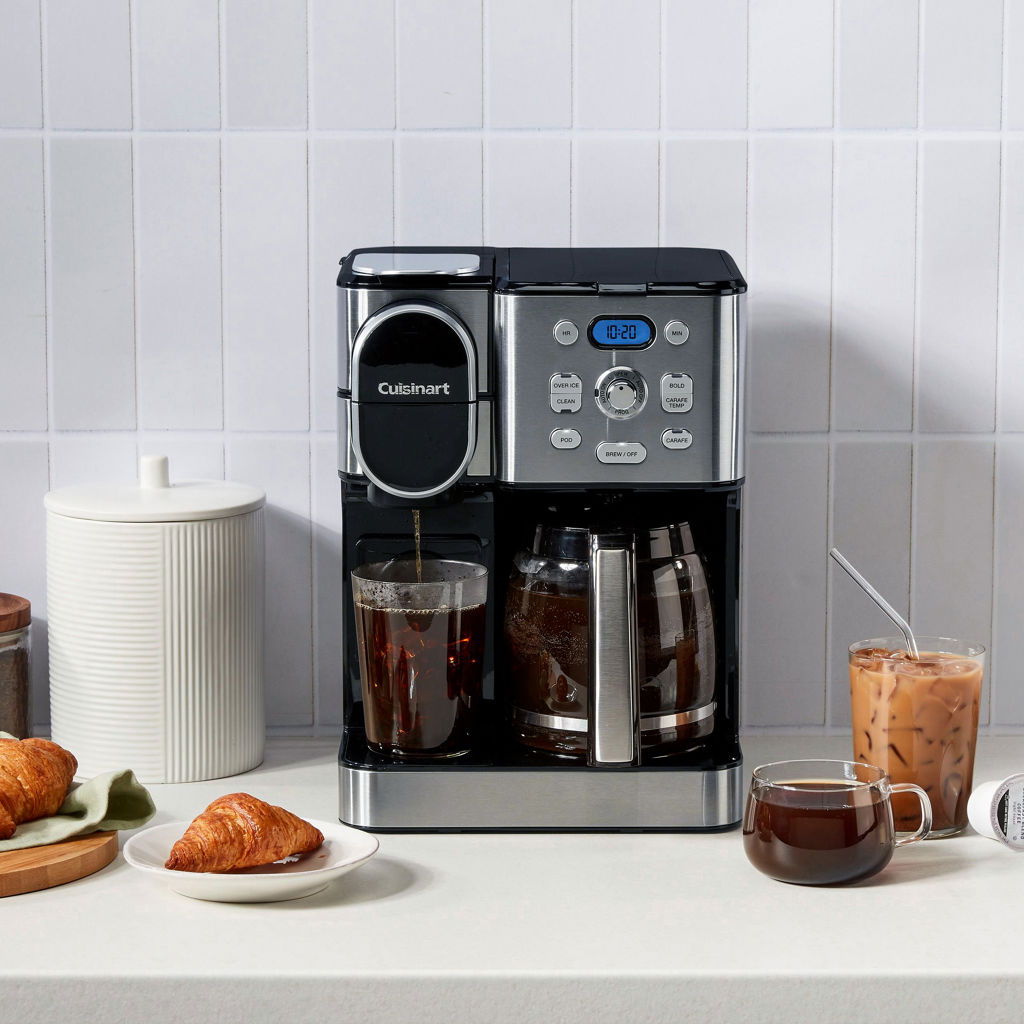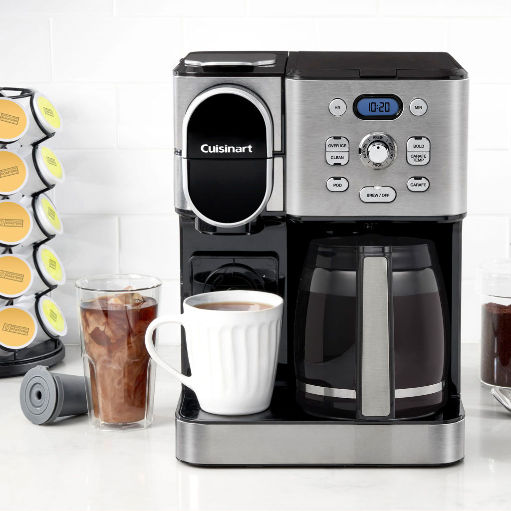 Goutte à goutte ou dosette, chaud ou glacé, tasse unique ou carafe pour 12 - obtenez votre café à votre façon avec la cafetière 2-en-1 de Cuisinart.