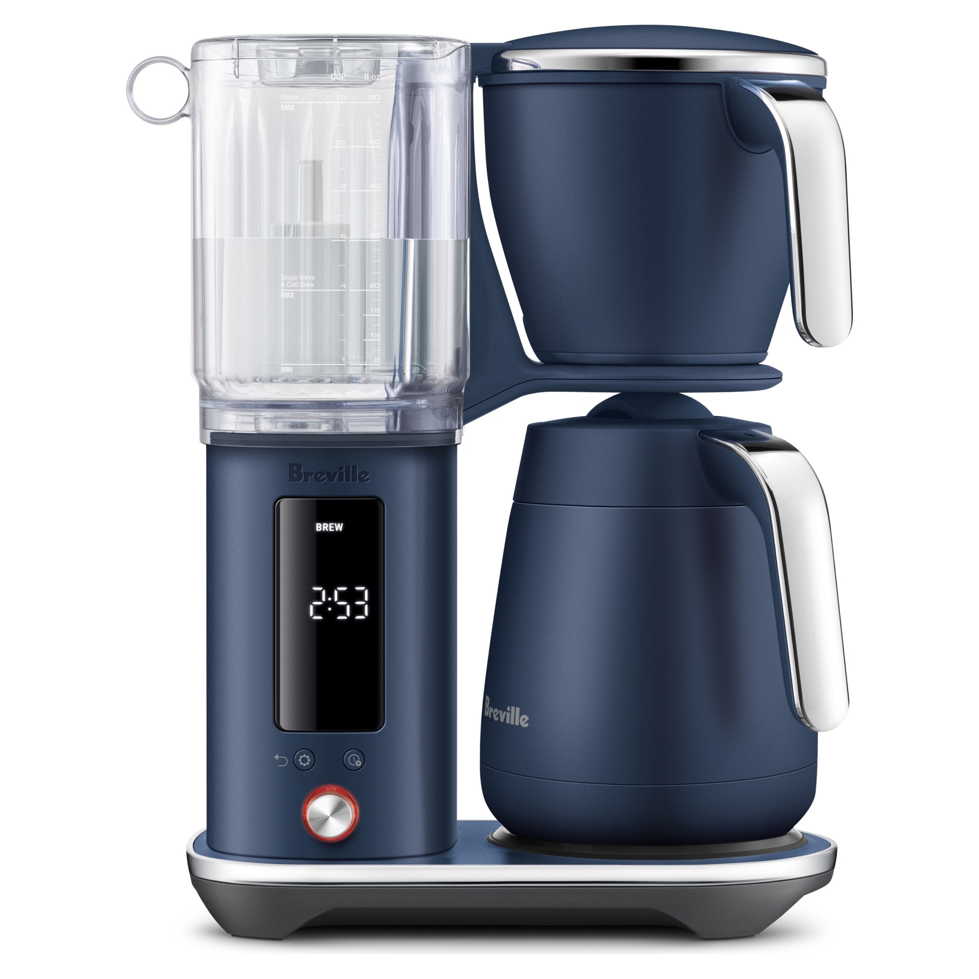 Commencez la journée du bon pied avec la cafetière filtre Breville Luxe Thermal Carafe. D'une simple pression, elle prépare instantanément votre tasse parfaite. Personnalisez votre infusion et savourez une saveur uniforme grâce aux réglages enregistrés. Que vous utilisiez du café moulu ou en grains, savourez une base corsée ou explorez des recettes complexes de café infusé à froid. La carafe thermique maintient votre infusion à la température idéale.