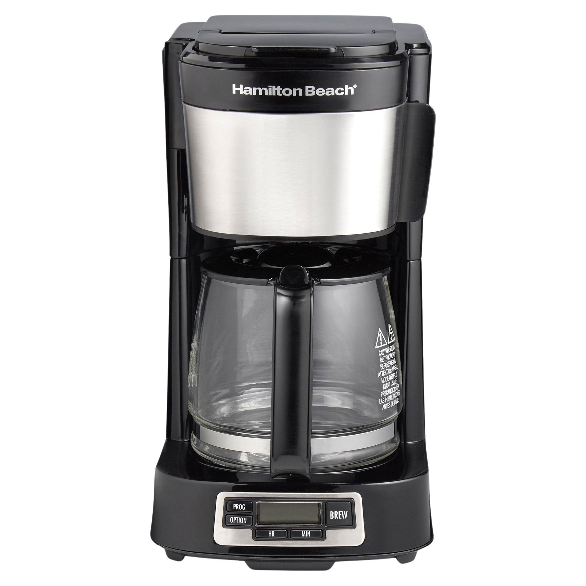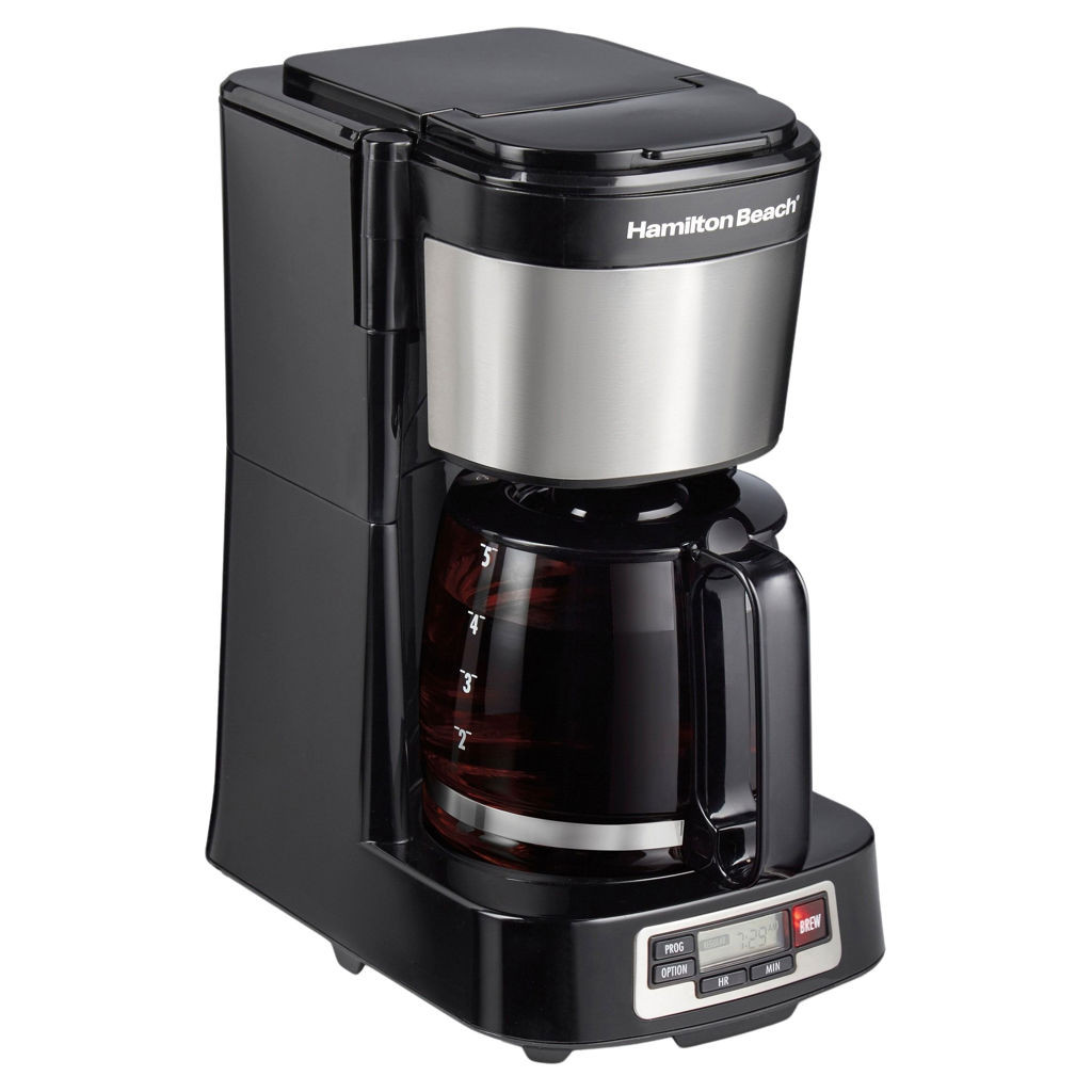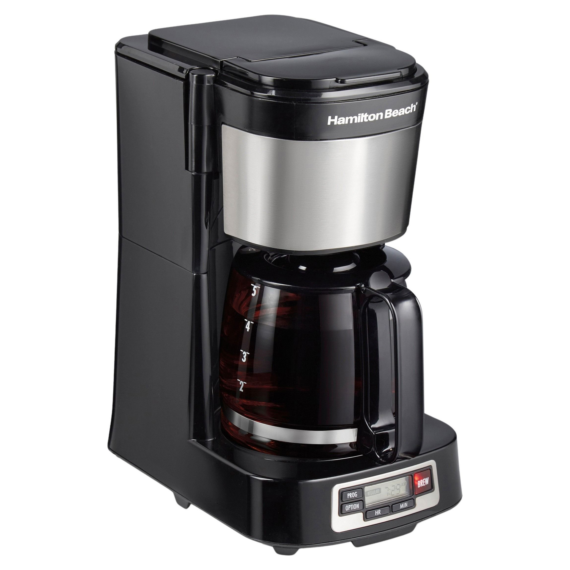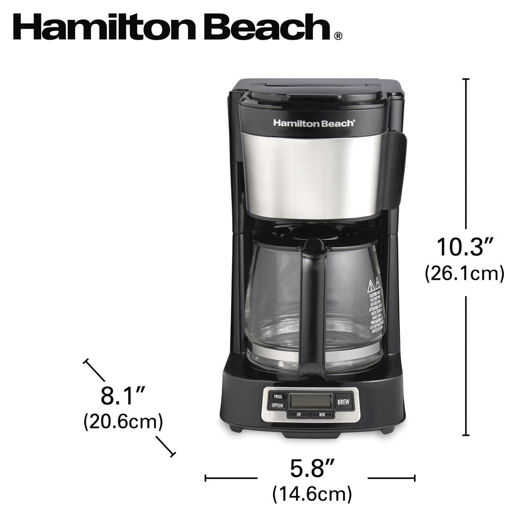 La cafetière compacte Hamilton Beach® 5 tasses avec horloge programmable présente un design compact et prépare la quantité de café idéale pour vos besoins quotidiens. Parfaite pour les petites cuisines, les appartements et tout espace où vous souhaitez optimiser votre plan de travail, elle est programmable et dotée de nombreuses fonctionnalités que l'on retrouve habituellement sur les cafetières de taille standard.
