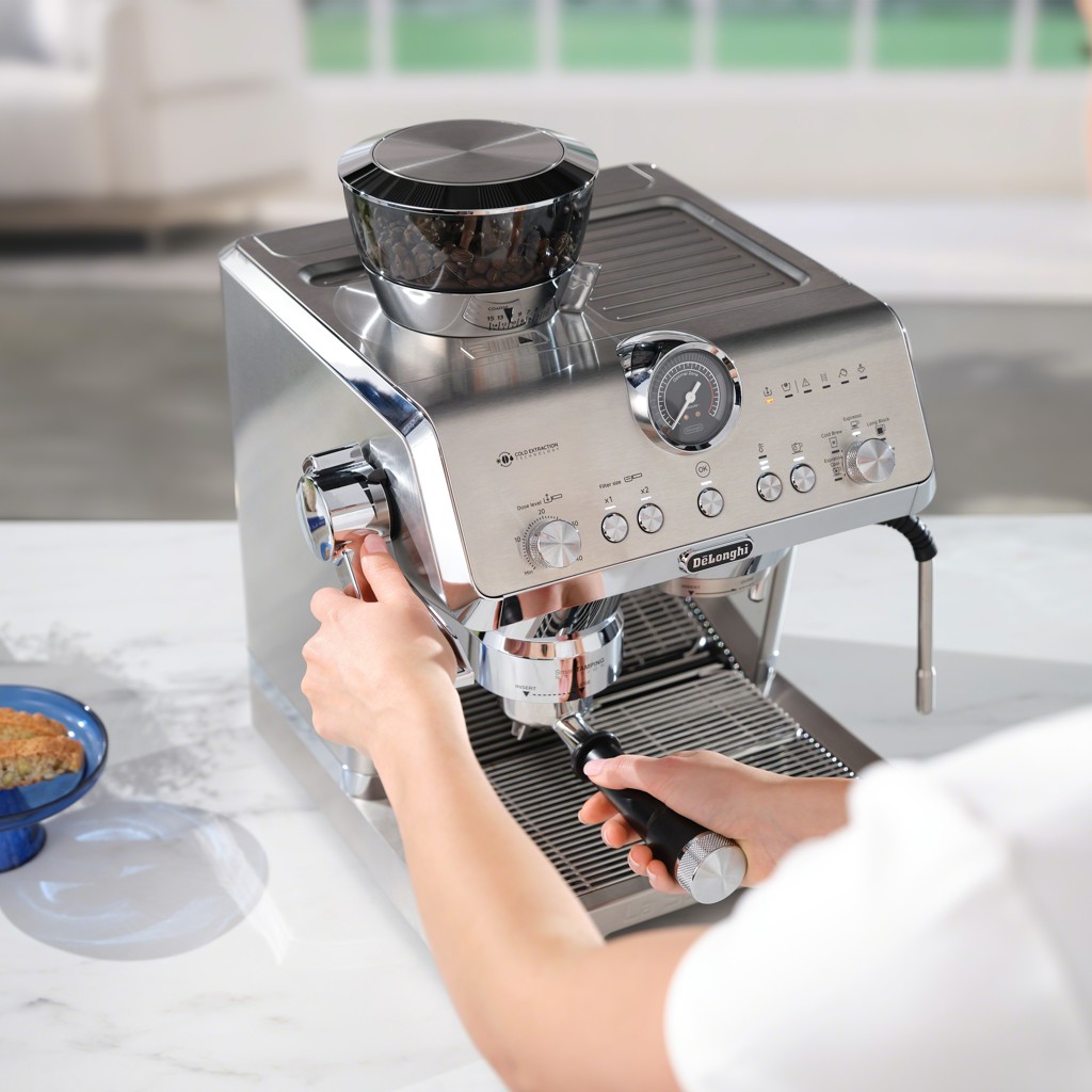 • La technologie de tassage intelligent simplifie la tâche et élimine les dégâts lors du tassage. Il suffit de tirer le levier pour tasser le café et obtenir un tassage uniforme et une extraction constante à chaque fois.