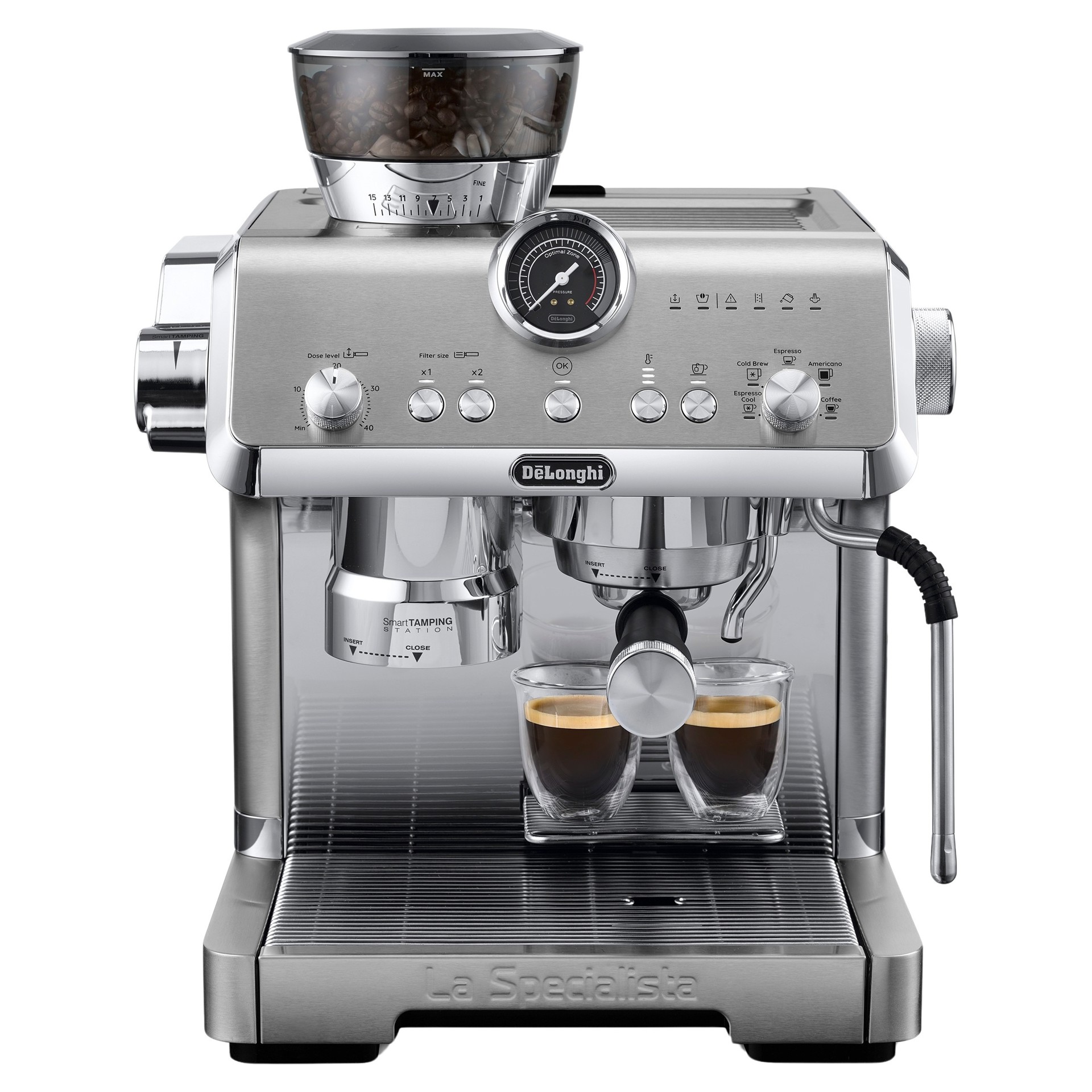 • La Specialista Opera est équipée d’une pompe italienne de 19 bars qui assure une pression parfaite, essentielle tout au long du processus d’infusion, de la basse pression pendant la préinfusion à la haute pression optimale de 9 bars pendant l’extraction.