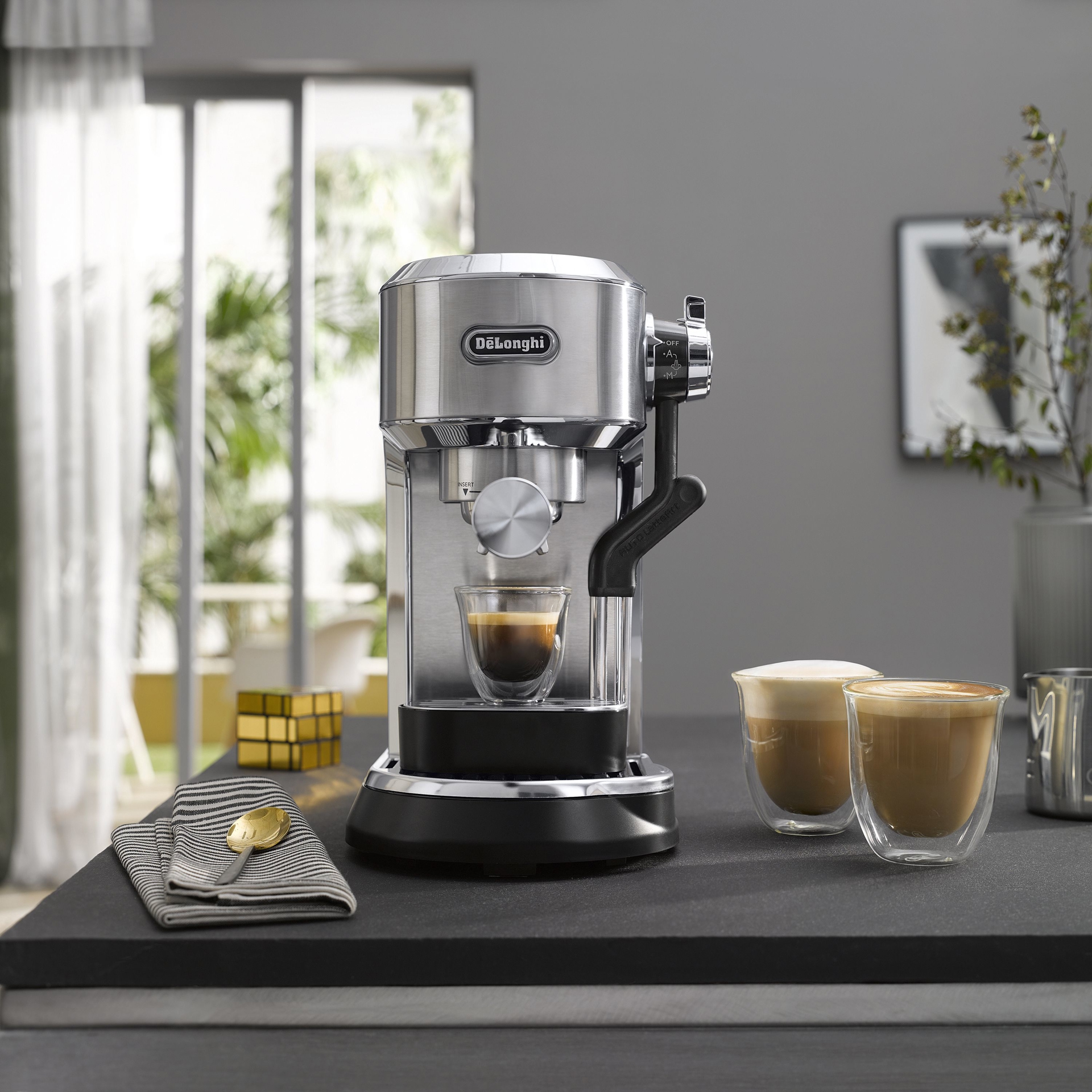 Dedica Maestro Plus dispose d'une pompe italienne de 15 bars qui fournit une pression parfaite, essentielle pendant le processus d'infusion, de la basse pression pendant la pré-infusion à la haute pression optimale de 9 bars pendant l'extraction.