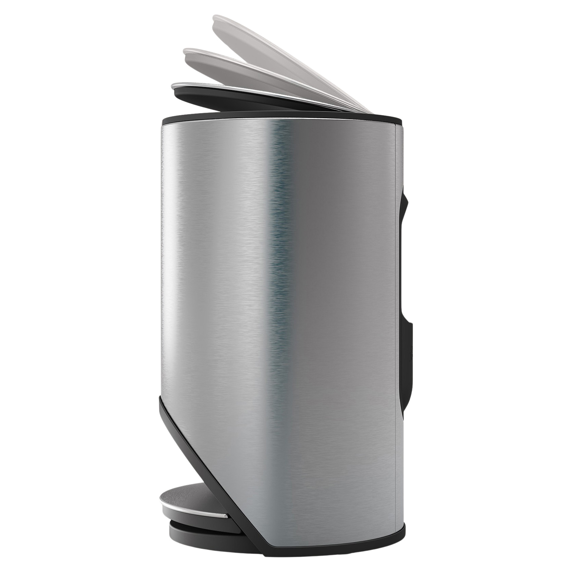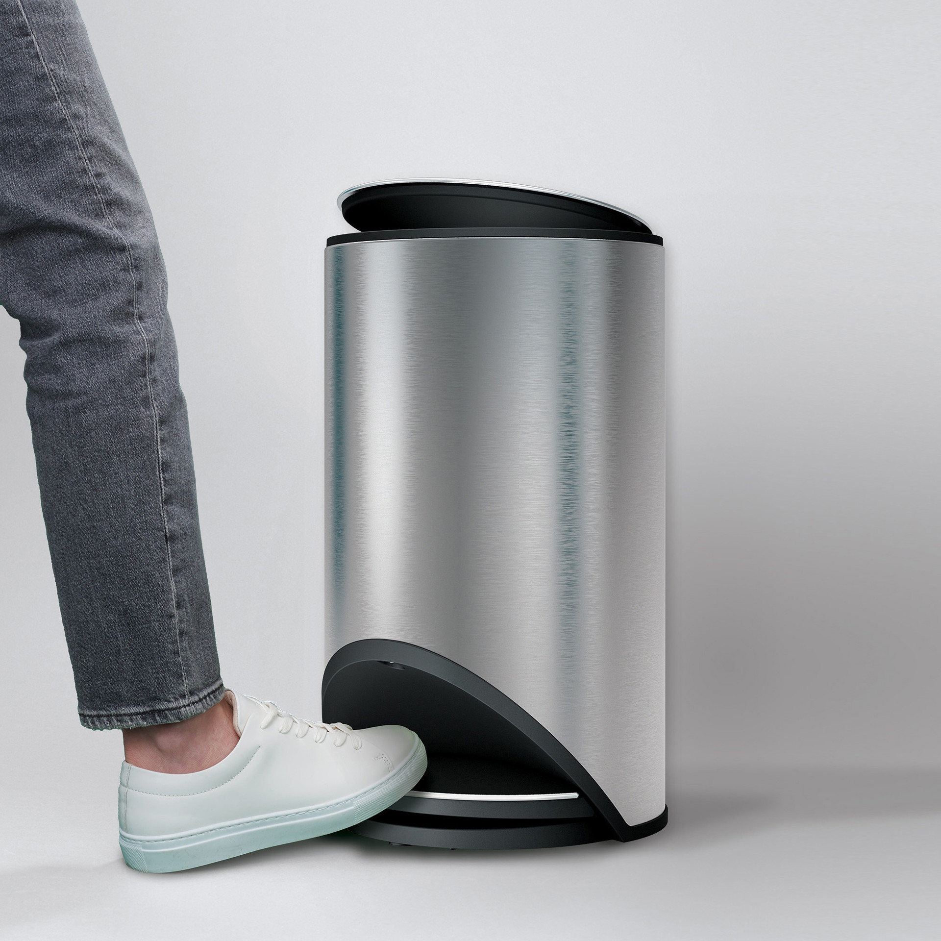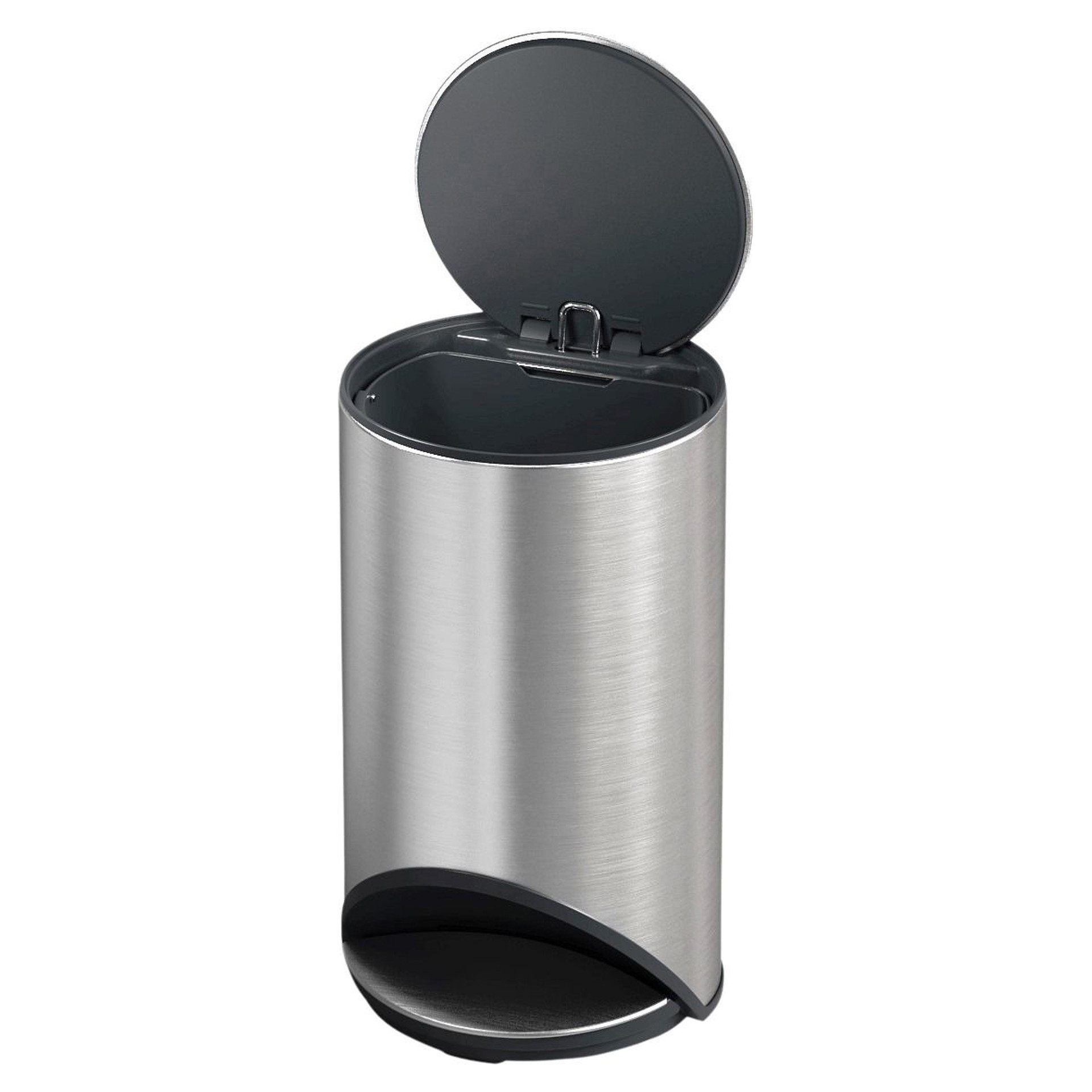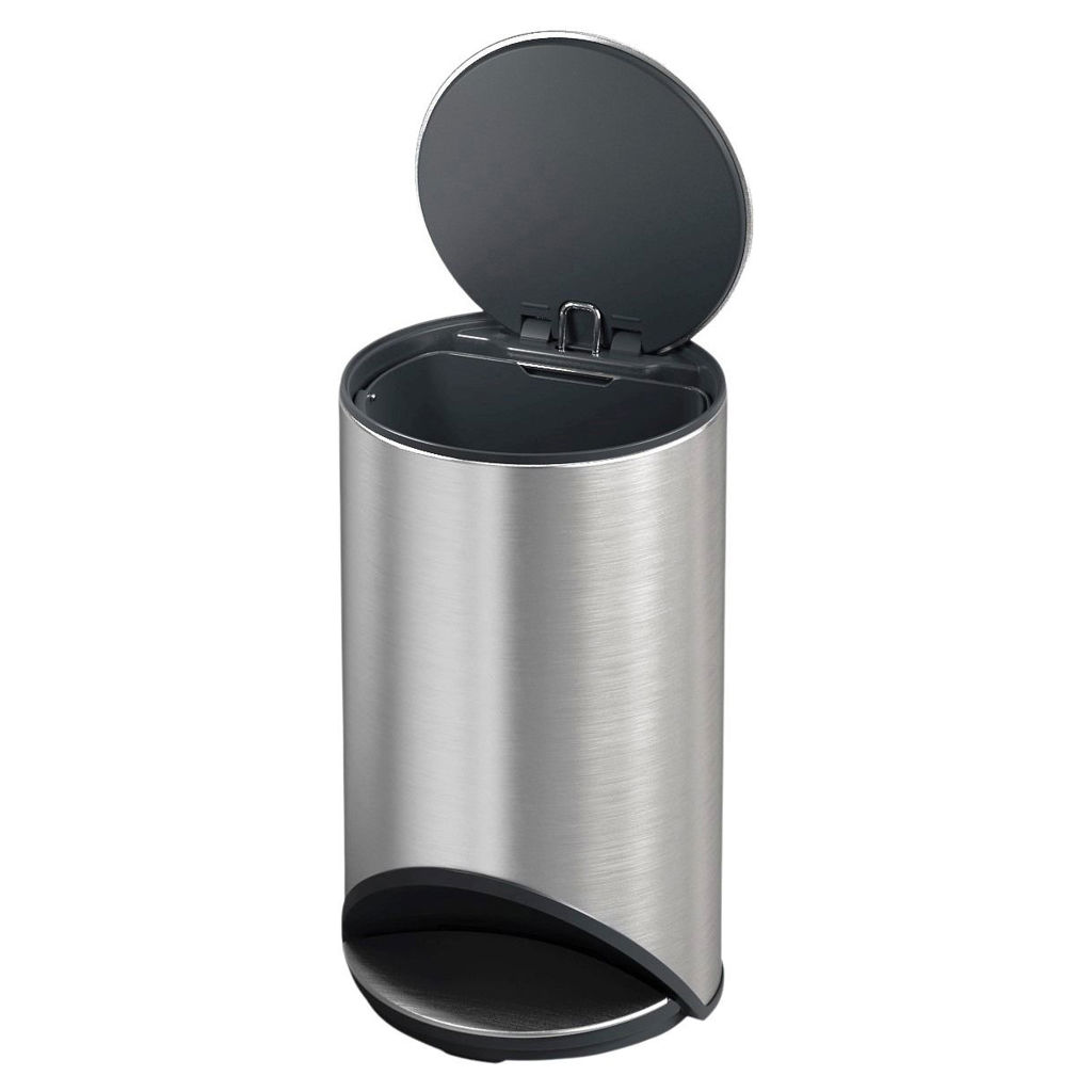 Cette poubelle circulaire et élégante possède une grande pédale facile à activer et permet d'économiser de l'espace plancher en s'intégrant facilement à l'espace disponible.