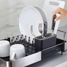 • Cet élégant égouttoir à vaisselle offre un plateau coulissant en 2 parties qui vous permet d´adapter facilement la taille de votre espace d´égouttage à votre quantité de vaisselle.