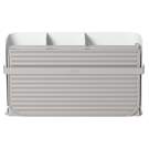 Il est composé d´un support métallique et d´un tapis qui se replient pour faciliter le rangement. La base comporte trois compartiments pour vos couverts, ustensiles ou les accessoires de nettoyage comme les éponges et les brosses à récurer.